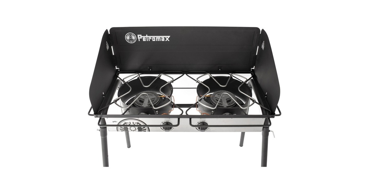 Der Petromax Gastisch ge90-s bringt direkte Kochhitze auf Knopfdruck und trumpft mit zwei leistungsstarken 5 kW Brennern auf. Die Konstruktion ist speziell auf die Verwendung von robuster Kochausrüstung für draußen ausgelegt und ermöglicht ein bequemes Zubereiten von Mahlzeiten auf Hüfthöhe. Die Zündung des ge90-s erfolgt über einen kombinierten Bedienknopf mit integriertem Piezozünder. Dieser sorgt nicht nur für den entscheidenden Funken, sondern macht die stufenlose Reglung der Gasflamme möglich. Besonders sicher: Sollte die Flamme versehentlich verlöschen, so unterbricht die automatische Flammenüberwachung die Gaszufuhr und minimiert das Risiko einer Verpuffung. Der Gastisch wird mittels mitgelieferten 50 mbar Druckreglers mit Membransteuerung an handelsübliche Propangasflaschen angeschlossen, was einen gleichbleibenden Gasdruck und eine zuverlässig brennende Gasflamme ermöglicht. Mit einer maximalen Traglast von 100 kg stemmt der ge90-s auch randvolle Feuertöpfe und -pfannen und bietet dank der vier leicht abnehmbaren Standfüße gleichzeitig vielfältige Einsatzgebiete auch außerhalb des heimischen Gartens.Art.-Nr.: 1654393