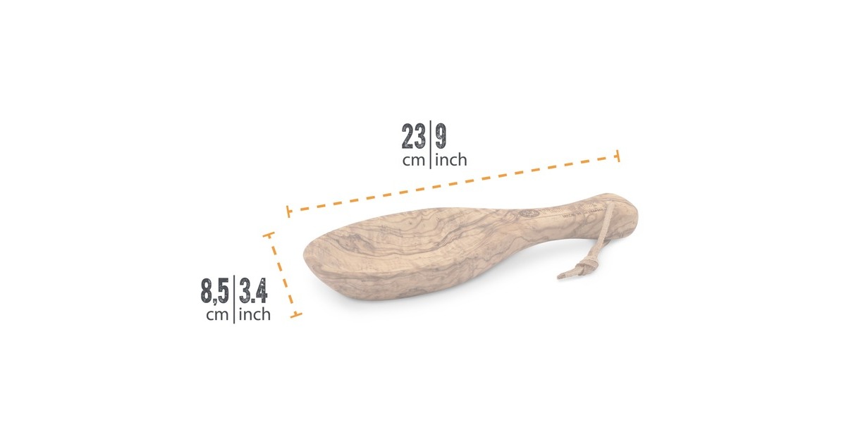 Die Petromax Griffschale aus Olivenholz in 23cm Länge ist vielseitig anwendbar als Löffel, Schale, Servierschale oder Kelle beim Draußen-Kochen. Der Griff sorgt dafür, dass man vor der Hitze des Topfes oder der Mahlzeit geschützt ist. Die Vertiefung bietet ausreichend Platz zum Servieren von frischen Funden aus dem Wald, zum Schöpfen oder als Bushcraft-Teller für das Lagerfeuer-Mahl. Die Schale besteht aus Olivenholz des Echten Ölbaums. Die gefällten Olivenbäume konnten nicht mehr beerntet werden und so zeigt sich ein ganzes Baumleben in einer einzigartigen Maserung. Das Holz mit dunkel gemasertem Kern und hellen, homogenen äußeren Jahresringen wird durch eine einzigartige Handwerkskunst hervorgehoben. Dank des Öl-Wachs-Finish ist die Olivenholz-Schale lange haltbar und stets für den nächsten Draußen-Einsatz bereit.Art.-Nr.: 1862190