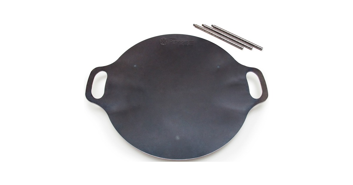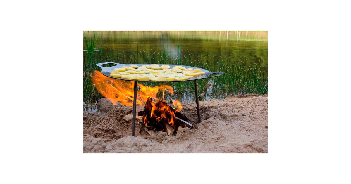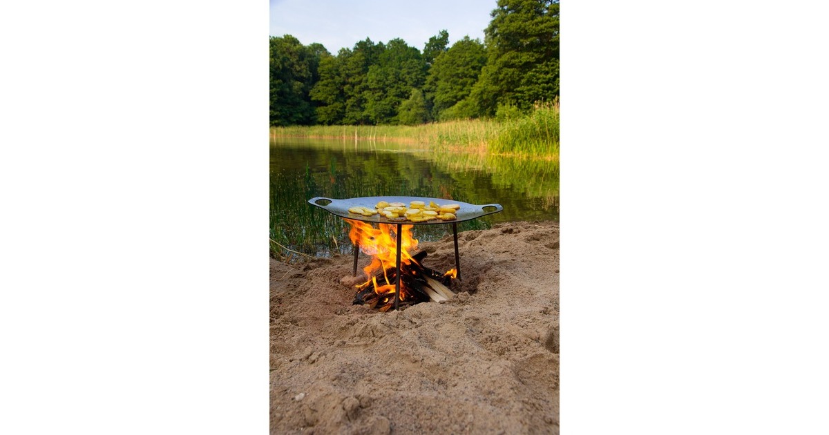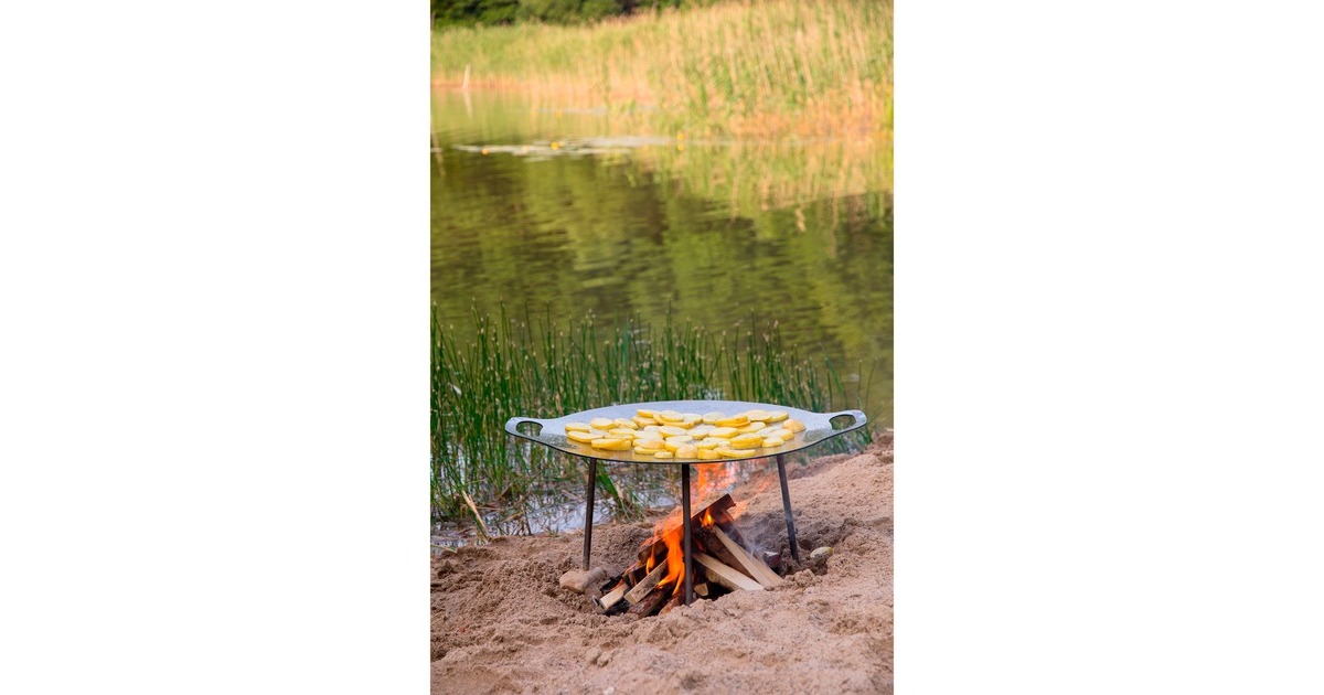 Die Grill- und Feuerschale fs48 von Petromax bietet 2 in 1: Grillpfanne und Feuerschale, das Multitalent aus Stahl. Entweder man entfacht ein Lagerfeuer in der Feuerschale, um den darunterliegenden Boden unversehrt zu lassen oder man stellt die Grillschale mit ihren drei Standbeinen (23cm) über das offene Feuer, um leckeres Essen zuzubereiten. Das Besondere dabei: In der Mitte wird die Schale heißer als am äußeren Rand. Ein saftiges Stück Fleisch gart am Rand nach, während in der Mitte noch das Gemüse brutzeln kann. Bei jedem Brat- und Brennvorgang baut sich eine Patina auf, die für einen natürlichen Antihafteffekt sorgt. Auch ohne ihre Standbeine kann die Grillschale in den Größen fs48 und fs56 z.B. auf einem Atago verwendet werden.Art.-Nr.: 1533716