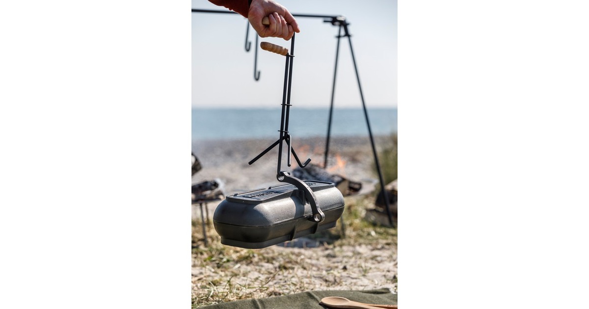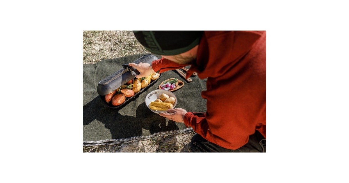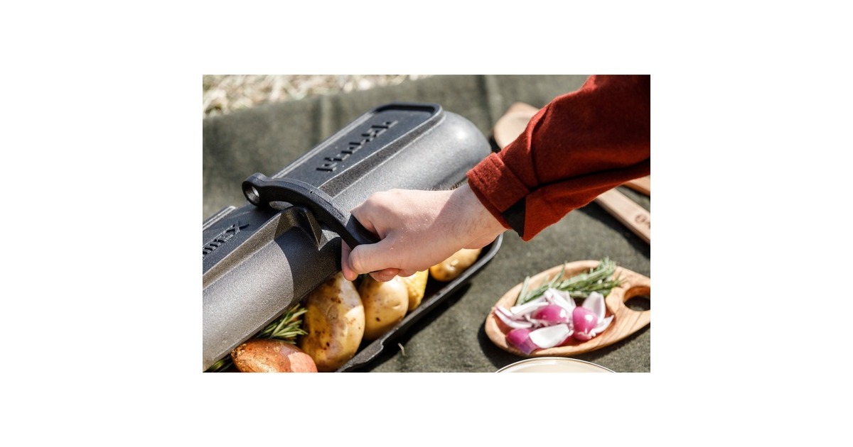 Die traditionellen Lagerfeuerkartoffeln lassen sich jetzt nachhaltig auch ohne Alufolie genießen. Der gusseiserne Kartoffelbräter pto45b von Petromax erfüllt die Funktion eines in sich geschlossenen Backofens, mit dem die Backkartoffeln vom Lagerfeuer sicher gelingen. Durch den speziell entwickelten Kippriegel-Mechanismus wird das Anheben zu einer sicheren Angelegenheit, denn der Petromax Deckelheber passt ideal in die Hebeöffnung. Dabei werden die beiden Halbschalen fest miteinander verschlossen und die Speisen bleiben, vor Asche geschützt im Inneren des Kartoffelbräters. Für einen kippsicheren Stand sorgt dabei der umlaufende Steg an der Unterseite. Der erhöhte Rand an der Oberseite formt eine Ablagefläche für Kohlen, Briketts oder Glut. Im gusseisernen Kartoffelbräter sind alle Vorteile von Form und Material vereint: Durch das Gusseisen wird der Eigengeschmack der Speisen intensiviert und die runde Bauform unterstützt die Wärmeverteilung optimal. So entstehen charakteristische Röstaromen bei gleichmäßigem und schonendem Garvorgang mit Rundum-Hitze. Der Kartoffelbräter aus Gusseisen ist für den direkten Einsatz im Feuer, unter und über der Glut, aber auch für den Einsatz auf dem Grill oder im Backofen geeignet. Mit dem Kartoffelbräter wird nicht nur das Ausbacken von Kartoffeln, sondern auch das Überbacken von Fleisch, Fisch oder Gemüse zu einem echten Erlebnis. Insgesamt 4,8 Liter Füllvolumen auf 45cm Breite lassen ausreichend Platz für rustikale Backergebnisse und herzhaften Geschmack.Art.-Nr.: 1882055