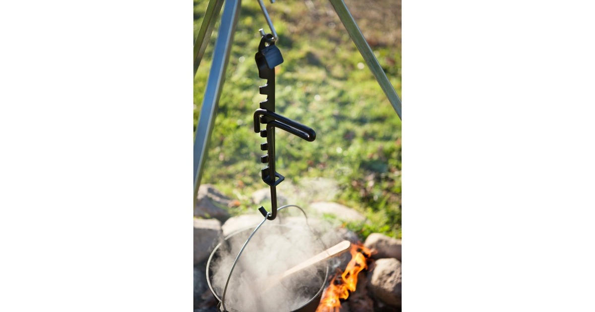 Mit dem Petromax Kesselhaken kann man wunderbar einfach Draußen-Kochen, dabei lässt sich die Höhe bzw. die Garzeit ganz einfach einstellen: Über den Handgriff lässt sich der Kessel auf insgesamt 7 Zähne aufstecken um die Garzeit zu verkürzen oder zu erhöhen.Art.-Nr.: 1533662