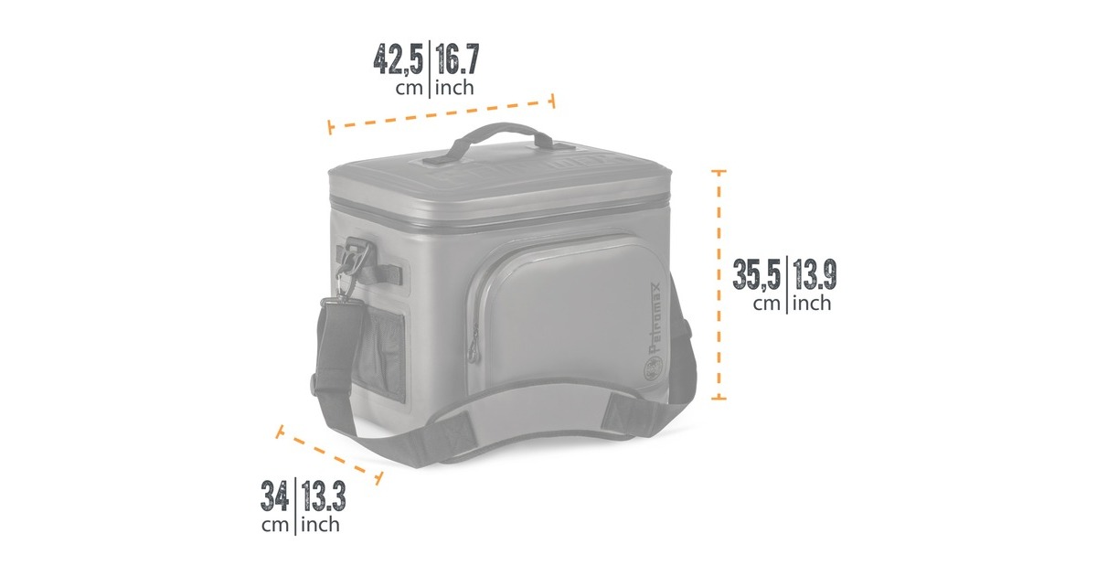 Die Petromax Kühltasche bietet einen Nutzinhalt von 22 Liter und gehört zur Grundausstattung, um draußen unabhängig von Akku und Strom zu sein. Sie hält Speisen und Getränke sechs Tage lang frisch und ermöglicht durch ihre einsatztaugliche Farbe Verpflegung bei der Jagd, bei Bootstouren, beim Camping, Angelsport und beim Abenteuer-Picknick. Mit Hilfe des wasserabweisenden Nylongewebes und des wasserdichten Reißverschlusses bleiben Eiswürfel und Kühlakkus sicher in der Kühltasche verstaut und kühlen zuverlässig Fleisch, Gemüse und Getränke. Durch den Schultergurt und die Tragegriffe kann man die Tasche einfach überallhin mitnehmen. Die Petromax Kühltasche lässt sich mittels Ösen für Karabiner und Co. im Boot oder Auto sicher befestigen. Ihre vier separaten Taschen bieten Platz für kleine Ausrüstungsgegenstände, wie z.B. den Dreibein-Ring, Anzündmaterial oder Feuerzeug. Dank des Flaschenöffners können Kronkorken direkt an der Tasche geöffnet werden. Die Petromax Kühltasche 22 Liter kann mit bis zu 10 kg Eiswürfeln befüllt werden und bietet Platz für vier 1,5-Liter-PET-Flaschen. Dank ihrer herausragenden Kühldauer von sechs Tagen können Abenteurer in der Natur verweilen und ein komplettes Abenteurermenü unter freiem Himmel kochen.Art.-Nr.: 1854971