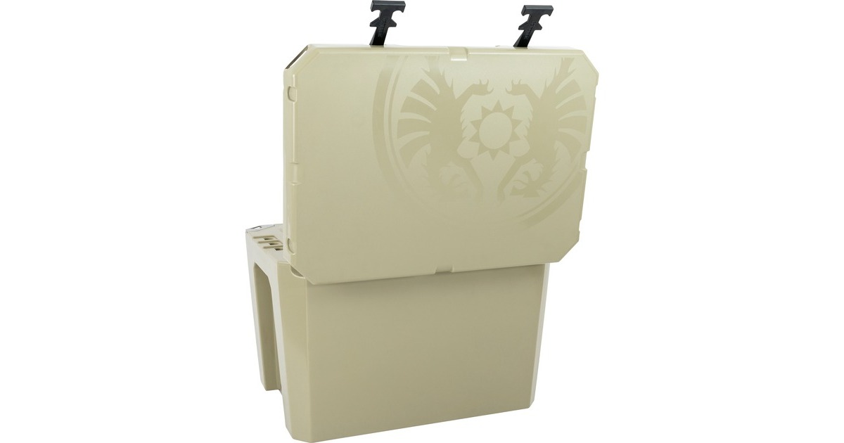 Deckel mit rutschfester Oberfläche als Sitz- und erhöhte Standfläche, Deckelführungen für Zurrgurte bei geschlossenem Transport, verstärkte Verschlussplatten für zusätzliche Sicherung mit Bügelschloss, rutschfeste Gummiverschlüsse (einhändig bedienbar), ergonomische Tragegriffe und zusätzliche Verzurrpunkte zum sicheren Öffnen / Schließen während des Transports, rutschfeste Gummifüße für festen Stand und Luftzirkulation an der Unterseite |