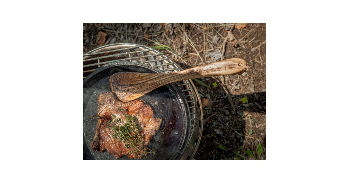 Der Petromax Pfannenwender aus Olivenholz dient zum Umrühren und Wenden von saftigen Steaks, Spiegelei, Gemüsepfannen und allen Gerichten, die man in der Pfanne, auf der Feuerschale oder im Feuertopf zubereitet. Dank seines Materials ist der Olivenholz-Spachtel besonders geeignet: Die wertvolle Patina wird beim Umrühren nicht beschädigt. Durch das flache Aufliegen kann man das Gericht ganz einfach vom Boden ablösen und servieren. Nach dem Kochen hängt man den Pfannenwender bequem am Lederriemen auf.Art.-Nr.: 1862195