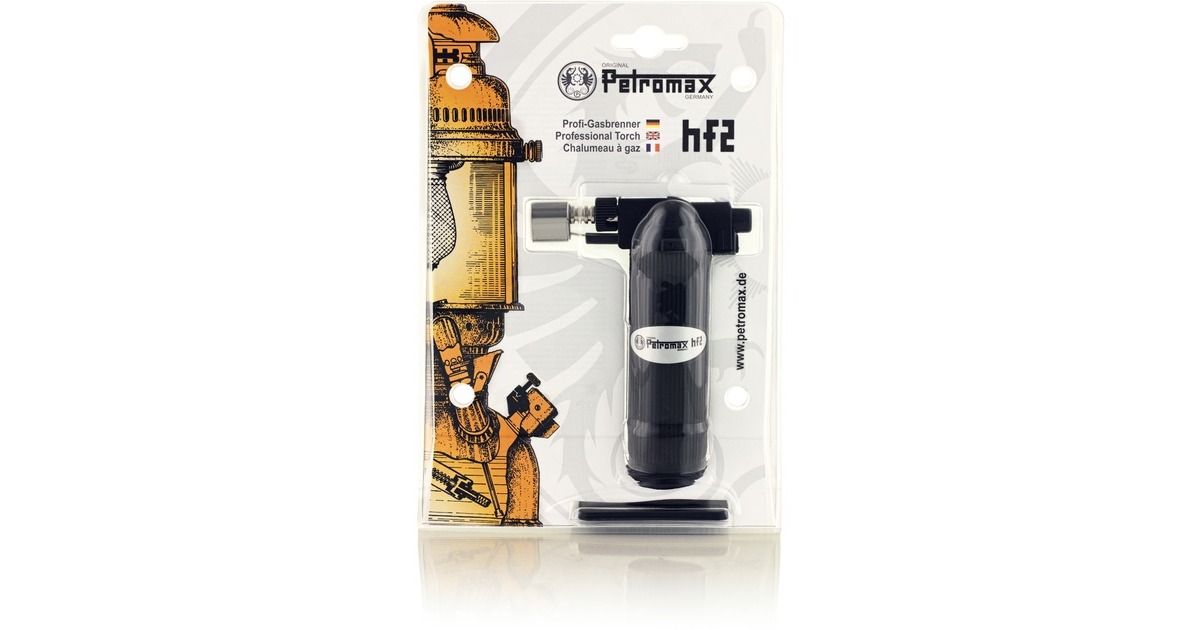 Der Petromax Profi-Gasbrenner hf2 ist ein handlicher, stufenlos regulierbarer Gasbrenner zum Entzünden von Leuchten, Grills, Lagerfeuern und ähnlichem. Mit seiner Leistung von max. 1.300°C eignet er sich auch für Lötarbeiten oder zum Schmelzen von Blei, Gold und Silber. Gas- und Luftzufuhr sind stufenlos regulierbar. Durch den Dauerbetriebsschalter und den abnehmbaren Standfuß ist er besonders praktisch und vielseitig einsetzbar. Der Profi-Gasbrenner hf2 ist außerdem mit einer Kindersicherung ausgestattet und wird mit normalem Feuerzeuggas (Butangas) befüllt.Art.-Nr.: 1621452