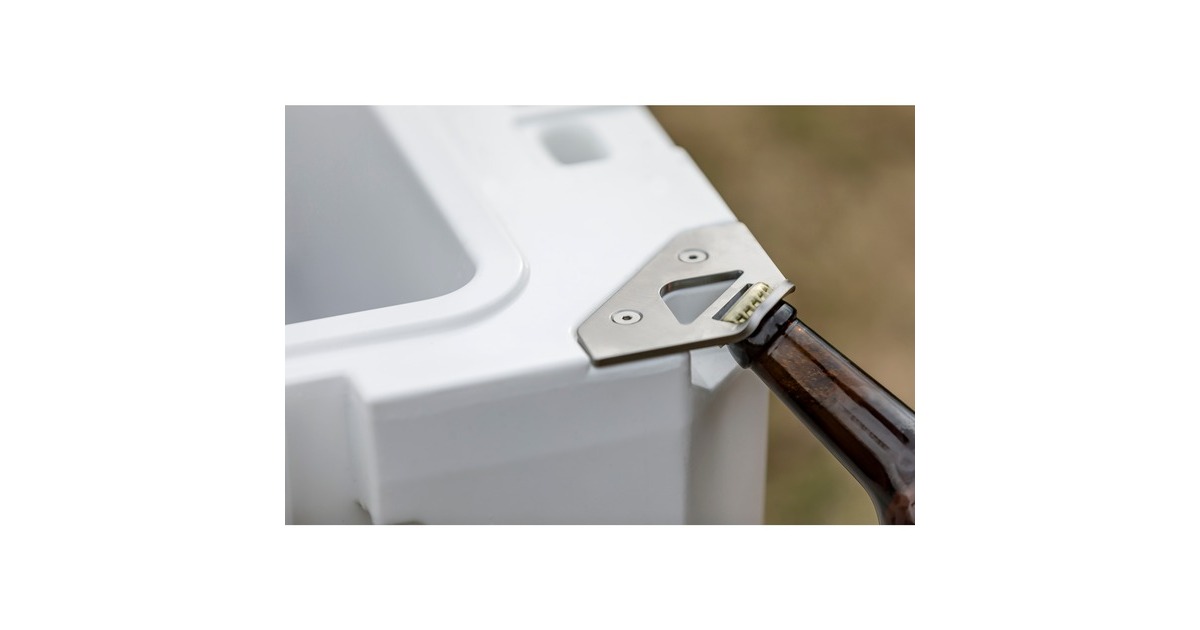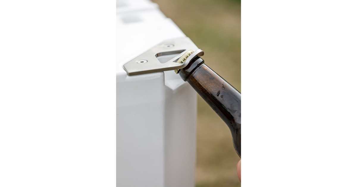 Die Petromax Kühlbox sicher verschließen und Getränkeflaschen bequem öffnen: Die Schlossplatte mit integriertem Flaschenöffner bietet bei Draußen-Abenteuern eine praktische Doppelfunktion. Das Zubehörteil aus Edelstahl passt genau an die Position der unteren Verschlussplatte einer Petromax Kühlbox und wird einfach gegen diese ausgetauscht. So verschließt man weiterhin das eigene Proviant sicher vor fremdem Zugriff und kannst gleichzeitig Getränkeflaschen mit handelsüblichem Kronkorkenverschluss öffnen. Die Schlossplatte mit Flaschenöffner ist universell und daher für alle Petromax Kühlboxen geeignet. Art.-Nr.: 1618990