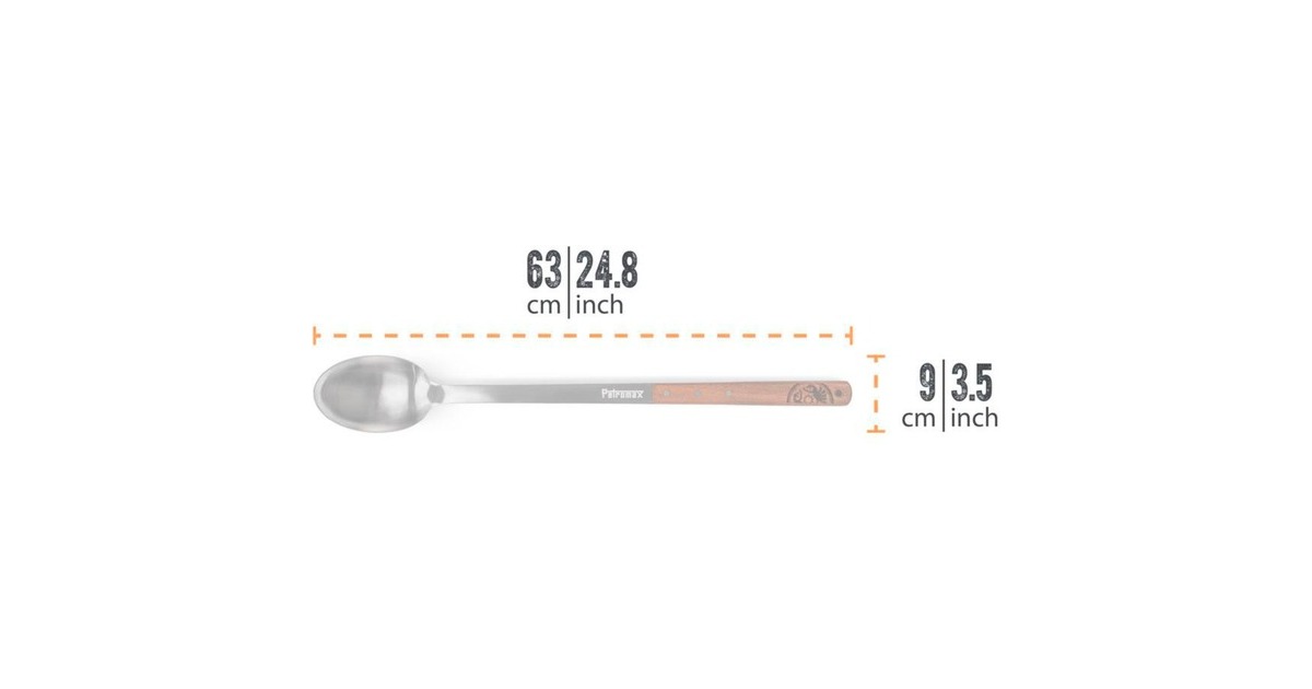 Der Petromax Servierlöffel ist ein praktischer Lagerfeuerlöffel für Aufläufe, Fleischgerichte, Beilagen und Gemüse. Mit 100ml Fassungsvermögen und 50cm Klingenlänge ist der hochwertige lange Löffel aus Edelstahl und Walnussholz mit eingraviertem Drachenlogo ideal zum Portionieren. Der extra lange Stiel sorgt für die passende Reichweite, wenn man über die Kochstelle hinweg direkt in die Schüsseln der Camp-Crew serviert. In gewohnter Petromax-Qualität sorgen die hochwertigen und robusten Materialien für eine perfekte Handhabung beim Anrichten und Portionieren der stärkenden Draußen-Mahlzeit. Feuerköche hängen ihren Petromax Servierlöffel mit Hilfe der Öse im Griff am Dreibein oder einem Haken in der Lagerfeuerküche auf. So kann direkt serviert werden, wenn der Auflauf fertig ist.Art.-Nr.: 1905409