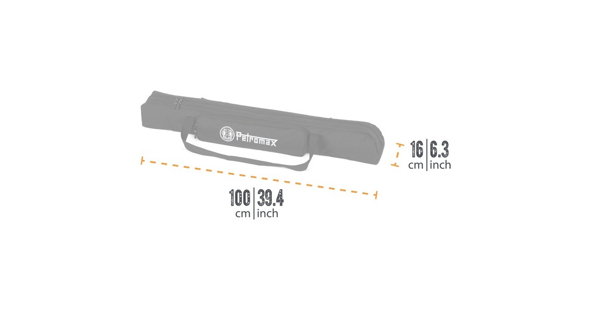 Diese praktische Transporttasche ist das ideale Transportzubehör für das Dreibein von Petromax. Das Gestell kann platzsparend verstaut werden und komfortabel zur nächsten Outdoor-Kochstelle transportiert werden. Die Tasche ist aus reißfestem und wasserabweisendem Nylongewebe und verfügt über Tragegriffe, deren Befestigung mit Kunstleder verstärkt wurde. Art.-Nr.: 1849044