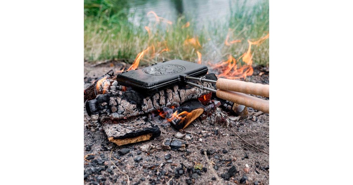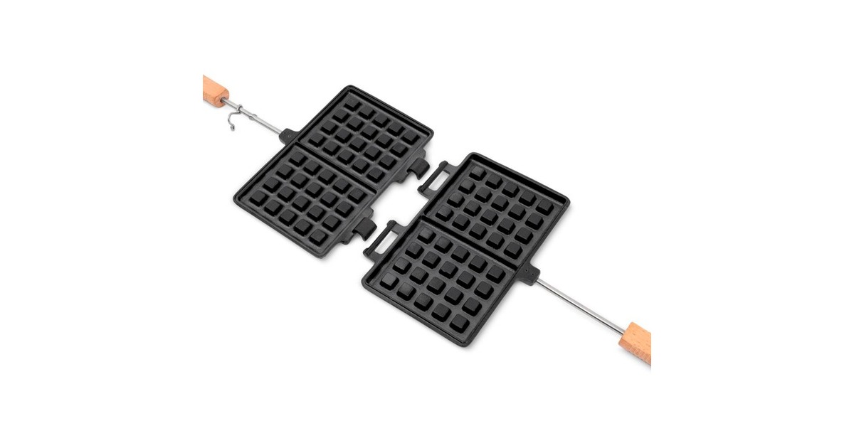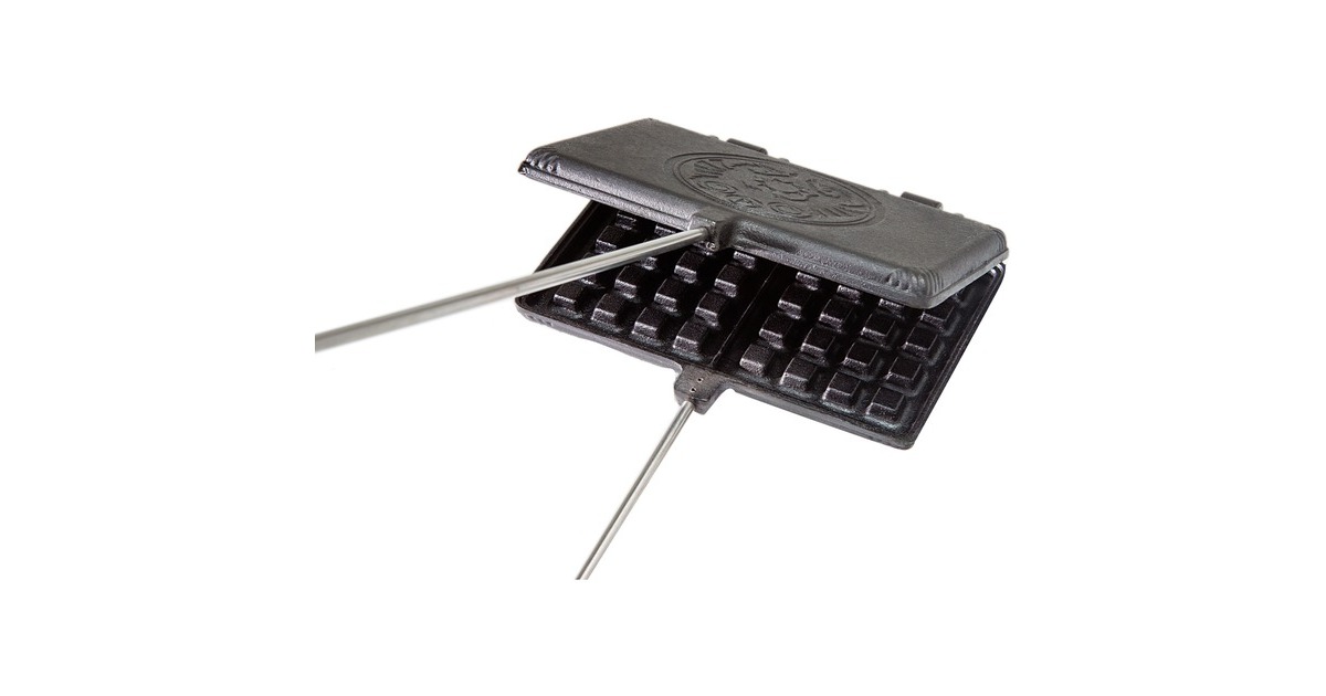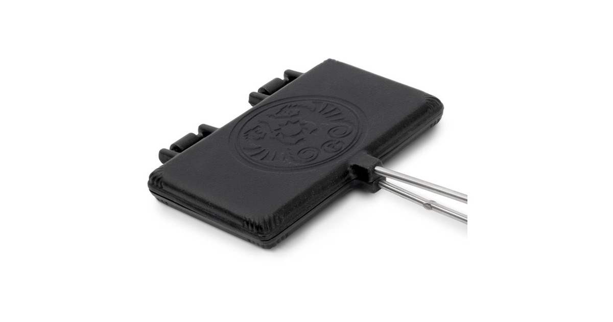 Das Waffeleisen wf-iron-s von Petromax bereichert die Outdoor-Küche um eine weitere Dessertvariation. Die gusseisernen Formen backen zwei Waffeln der Größe 9 x 11cm gleichzeitig und sind dank der vorbehandelten Oberfläche (seasoned finish) sofort einsatzbereit. Waffelteig einfüllen, das Waffeleisen gegebenenfalls einmal in der Hitze drehen und schon ist das leckere Gebäck fertig. Der praktische Verschlusshaken hält die Waffelformen zusammen, damit der Teig nicht herausläuft. Dank der Scharniere lassen sich die Gusshälften zum Reinigen leicht auseinander nehmen. Ob auf dem Grill oder am Lagerfeuer, die Holzgriffe sorgen für ausreichend Abstand zur Wärmequelle.Art.-Nr.: 1670887