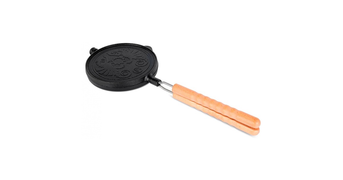 Das Wende-Waffeleisen ist eine gusseiserne Form, mit der herzhaftes oder süßes Waffelgebäck im Handumdrehen gelingt. Ein Verschlussmechanismus hält die Gussform auch während des Wendevorgangs zusammen. Die vorgeformten Einkerbungen geben der zweiteiligen Form eine feste Position im Gestell. Das Wenden ist dank der naturbelassenen Holzgriffe auch bei höheren Temperaturen kein Problem: Eine Gussnase, die sich an der Seite des Wende-Waffeleisens befindet, bildet den Wendeanschlag am Auflagegestell. So lässt sich das Eisen um 180° drehen und erhält mit der am Gestell aufliegenden Gussnase wieder die richtige Position. In wenigen Handgriffen entstehen so frische Herzwaffeln mit dem charakteristischen Geschmack, den traditionelles Gusseisen mit sich bringt.Art.-Nr.: 1675657