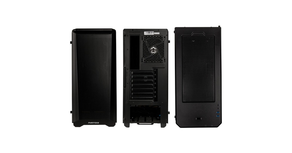 2 x 120 mm Black Phanteks-Lüfter vorinstalliert, ein weiterer 120 mm-Lüfter einbaubar, alternativ 3 x 140 mm-Lüfter einbaubar |