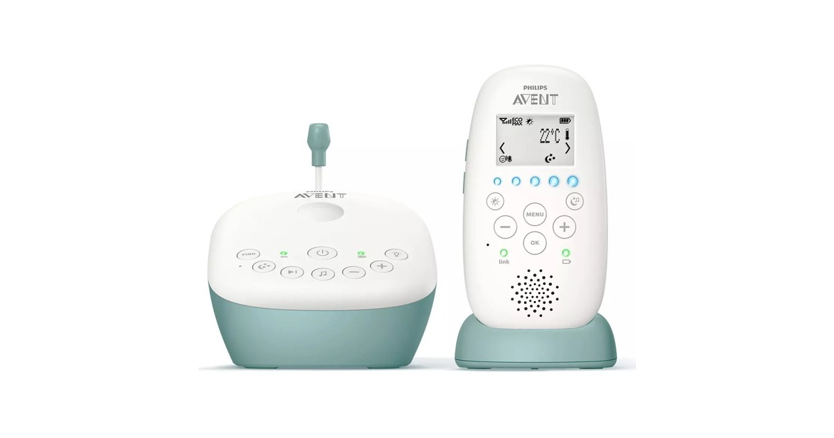 Mit dem Philips Avent SCD 731/26 Babyphone erhält man eine sichere, stabile und private Verbindung zu seinem Baby. Das Avent SCD 731/26 bietet eine Betriebszeit von bis zu 18 Stunden und kann per Netz- oder Batteriebetrieb verwendet werden. Mithilfe von LED-Benachrichtigungen wird man informiert, falls man sich nicht in Reichweite des Babyphones aufhält oder der Akku schwach ist. Ein besonderes Nachtlicht und Schlaflieder helfen dabei, dass Baby zu beruhigen, so kann man immer schnell und richtig handeln. Wenn manchmal nur der Klang der Stimme das Baby beruhigt, kann man via Fernzugriff jederzeit mit dem eigenen Baby sprechen. Dazu verfügt das Babyphne über eine beruhigende Sternenhimmel-Projektion, die sich über die Baby- oder die Elterneinheit aktivieren lässt. Dank des Nachtruhe-Modus kann das Avent SCD 731/26 durch leise und sanfte Vibrationen Benachrichtigungen auslösen. Für zusätzliche Sicherheit sorgt der integrierte Temperatursensor, der bei einer Veränderung sofort Alarm gibt, falls sich die Temperatur ändert.