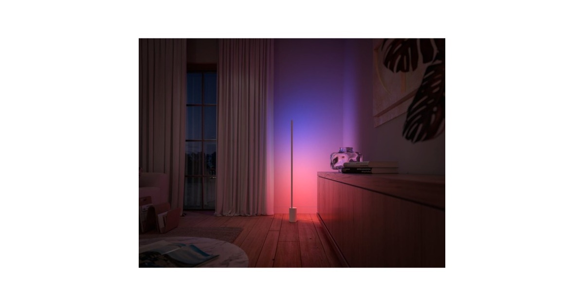Minimalistisches Design, maximale Leuchtleistung. Die Gradient Signe Stehleuchte überzeugt mit weißem Aluminium-Design. Diese etwa 1,5 Meter hohe Stableuchte erzeugt ein bei Bedarf farbiges sowie warm- bis kaltweißes Licht mit bis zu 2550 Lumen. Dabei lässt sie sich per Bluetooth-App direkt steuern, aber auch in eine bestehende Hue-Umgebung integrieren. So lässt sich die Beleuchtungs-Szenerie perfekt an die jeweilige Atmosphäre anpassen.Art.-Nr.: 1848075