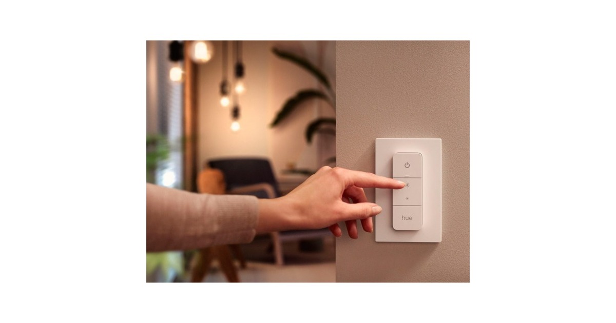 Mit dem Hue Dimmerschalter V2 kann das Licht im Raum gesteuert und gedimmt, zwischen Lichtszenen oder die für die Tageszeit beste Licht ausgewählt werden. Der Hue Dimmschalter kann an Wänden oder magnetischen Oberflächen angebracht werden, oder überall im Hause als Fernbedienung verwendet werden.