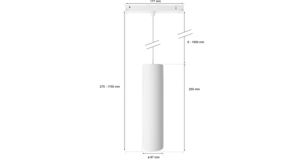 Lichtleistung bei 2700K (Standardeinstellung): 490 Lumen | die Leuchte nimmt auf der Schiene bis zu 17,7 cm ein | die Kordel kann in der Länge verstellt werden |