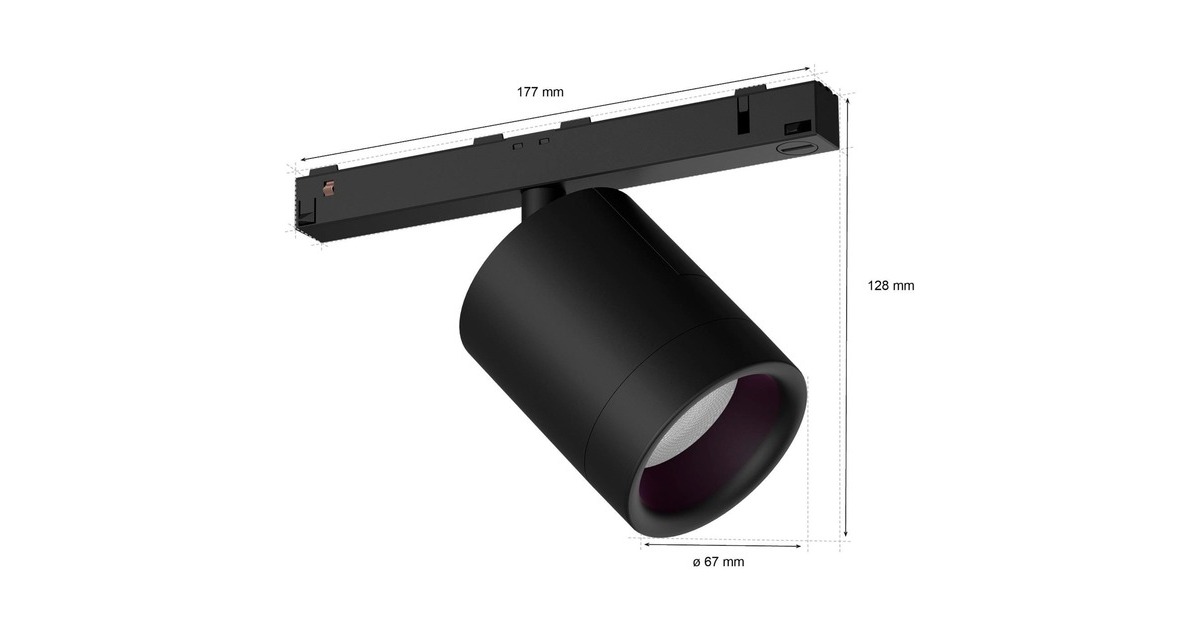 Lichtleistung bei 2700K (Standardeinstellung): 490 Lumen | der Spot nimmt auf der Schiene bis zu 17,7 cm ein | er ist um 350° drehbar |