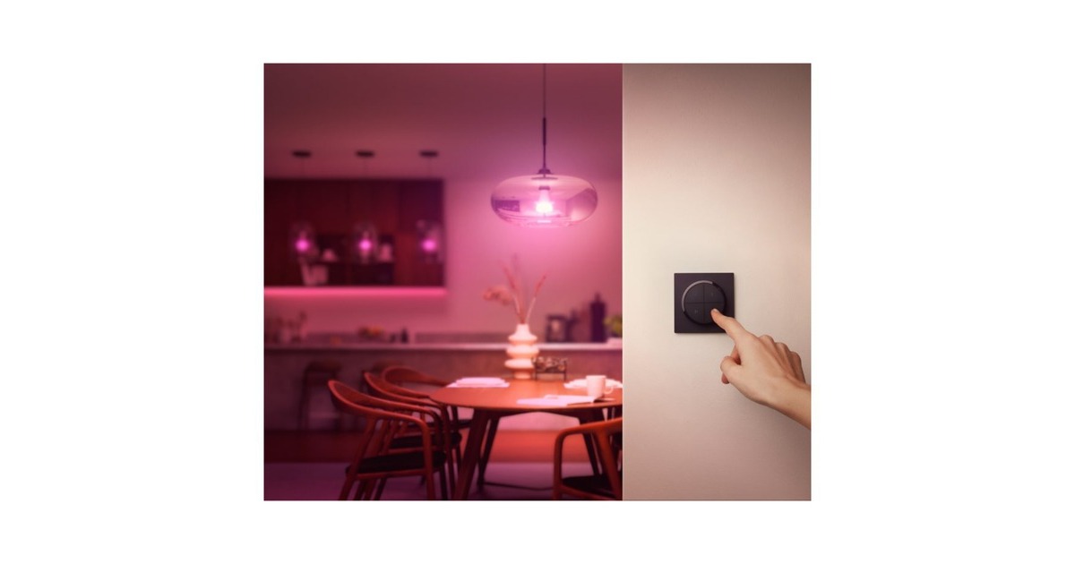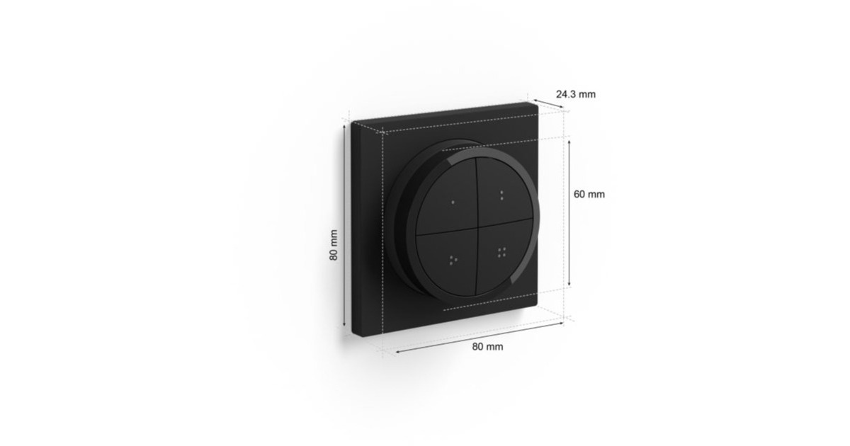 Der Philips HUE bietet vier frei konfigurierbare Tasten und ein Einstellrad. Pro Taste lassen sich bis zu drei Zimmer oder eine Zone steuern. Über das Einstellrad lässt sich die Beleuchtung dimmen. Der Schalter kann entweder fest an einer Wand montiert werden, oder einfach wie eine Fernbedienung benutzt werden.Art.-Nr.: 1855345