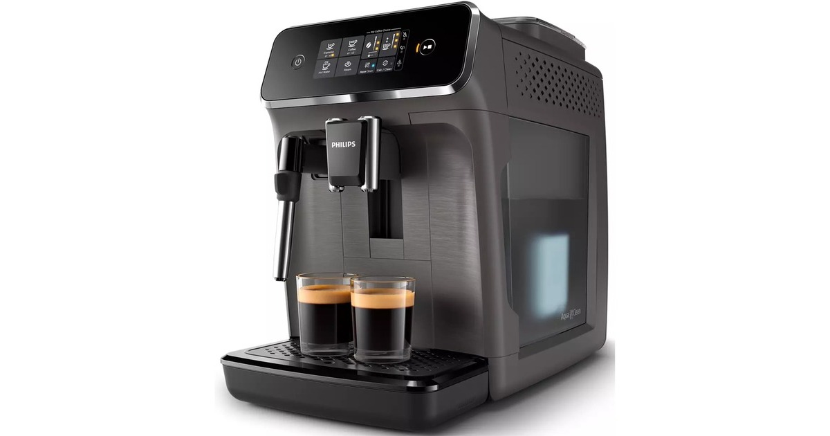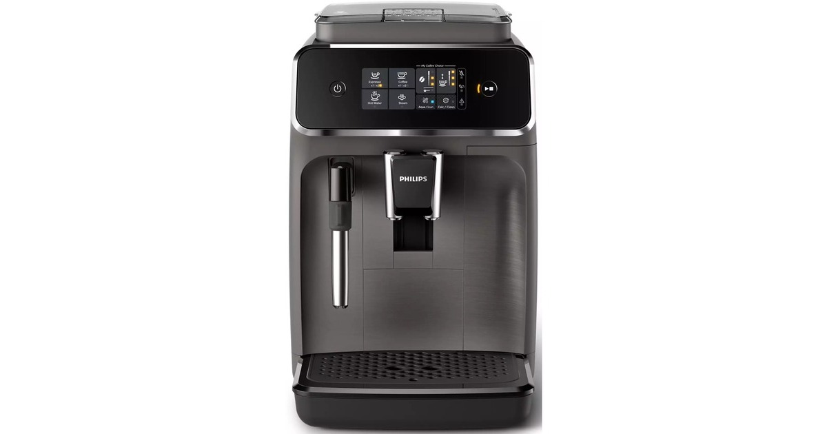 Mit dem Philips EP2224/10 Kaffeevollautomat der Series 2200 ist der Lieblings-Kaffee nur einen Knopfdruck entfernt. Durch das integrierte Keramik-Scheibenmahlwerk genießt man immer frisch gemahlenen Kaffee. Die intuitive SensorTouch Oberfläche der EP2224/10 macht die Zubereitung zum Kinderspiel. Für Genießer von Kaffee-Milch-Spezialitäten ist ein klassischer Milchaufschäumer integriert worden. So bereitet man beispielsweise köstlichen Cappuccino auf traditionelle Art und Weise zu. Über das Menü "Meine Kaffeeauswahl" passt man Stärke und Menge des Getränks der eigenen Vorlieben an. Dank des schnell aufheizenden Durchlauferhitzers kann heißer Kaffee in kürzester Zeit genossen werden. Die Reinigung des EP2224/10 Kaffeevollautomaten gestaltet sich dank automatischer Reinigungsfunktion relativ einfach. Der klassische Milchaufschäumer ist mit nur zwei Teilen leicht zu reinigen. Zusätzlich lässt sich die Brühgruppe einfach entnehmen und unter fließendem Wasser abspülen.Art.-Nr.: 1704812