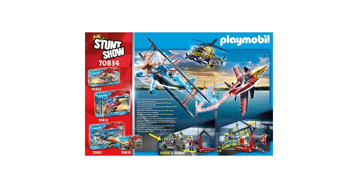 In der Servicestation werden die Flugobjekte und deren Einzelteile gewartet und repariert. Incl. mobilen Kran mit Seilwinde und Wingsuit. Der Reparaturservice kann ideal mit den Spielsets 70831 Air Stuntshow Doppeldecker "Phönix" und 70832 Air Stuntshow Düsenjet "Eagle" kombiniert werden. |