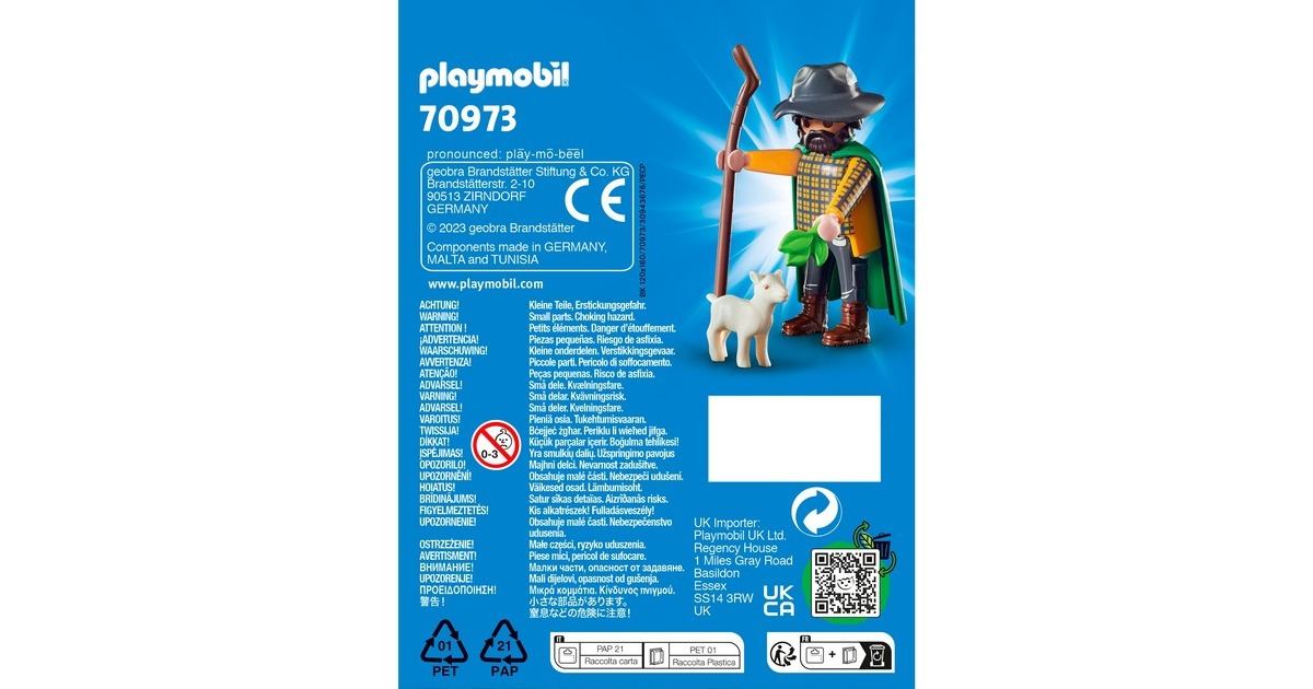 Mit den PLAYMOBIL-Figuren aus der Serie PLAYMO-Friends wird es nie langweilig! Der bärtige Schafhirte ist mit großem Hut, Stiefeln, einem vor dem Wetter schützenden Umhang und einem Stab ausgerüstet. Er hat Futter für sein kleines Lämmchen dabei.Art.-Nr.: 1888873
