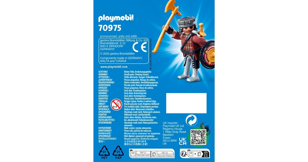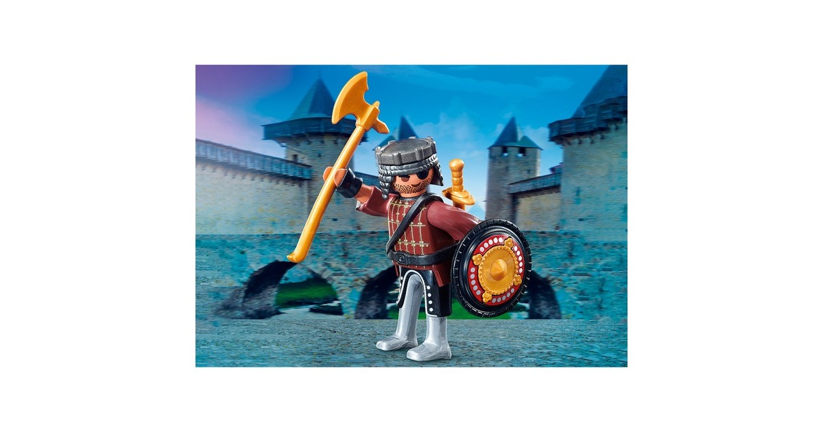 Mit den PLAYMOBIL-Figuren aus der Serie PLAYMO-Friends wird es nie langweilig! Der Barbar ist ein wirklich wilder Geselle: Er ist mit einem Gürtel, einer Streitaxt, Helm und einem Schwert ausgerüstet. Das Schwert kann am Gürtel befestigt werden. Art.-Nr.: 1888943