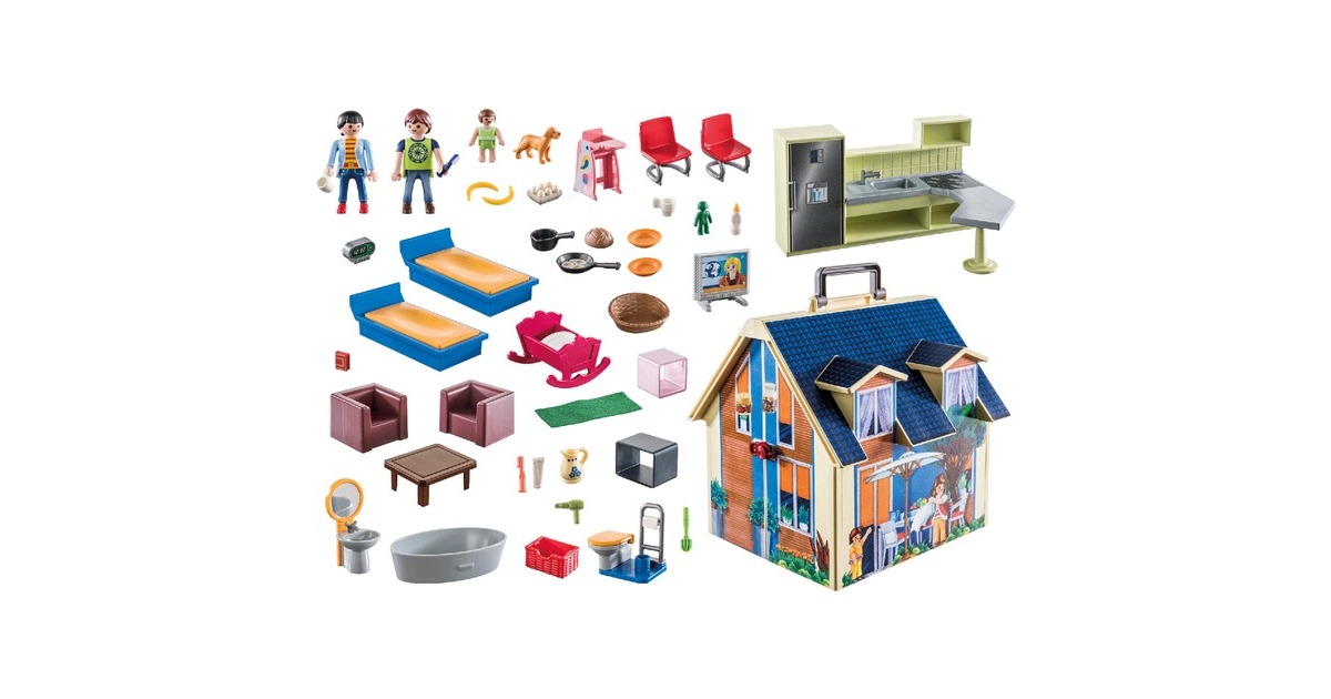 | Inhalt/Ausstattung | 1 Frau, 1 Mann, 1 Baby, 1 Hund laufend, 1 Hund, 1 Mitnehm-Puppenhaus, 2 Sessel, 1 TV-Gerät, 1 Couchtisch, 2 Betten, 1 Regal, 1 Buch, 1 Korb, 1 Box, 1 Wiege, 1 Puppe, 1 Baby-Fläschchen, 1 Hochstuhl, 2 Stühle, 2 Teller, 1 Kanne, 1 Pfanne, 1 Kasserolle, 1 Badewanne, 1 Toilette, 1 Waschbecken mit Spiegel, 1 Handtuch, 1 Bürste, 2 Bananen, 2 Teller, 1 Nachttisch, 1 Regal, 2 Tassen, 1 Pack Eier, 2 Zahnbürsten, 1 Brot, 1x Pfanne mit Kasserolle, 1 TV, 1 Korb, 1 Box, 1 Buch, 1 Wecker, 1 Hochsitz, 1 Puppe, 1 Nuckelflasche, 1 Küchenzeile, 1 Kanne, 1 Tube, 1 Haartrockner, 2 Sessel, 1 Wohnzimmertisch, 1 Marmeladenglas, 1 Schokomilch, 1 Wanne, 1 Waschbecken mit Spiegel, 1 Toilette mit Klopapier und Bürste, 1 Handtuch |