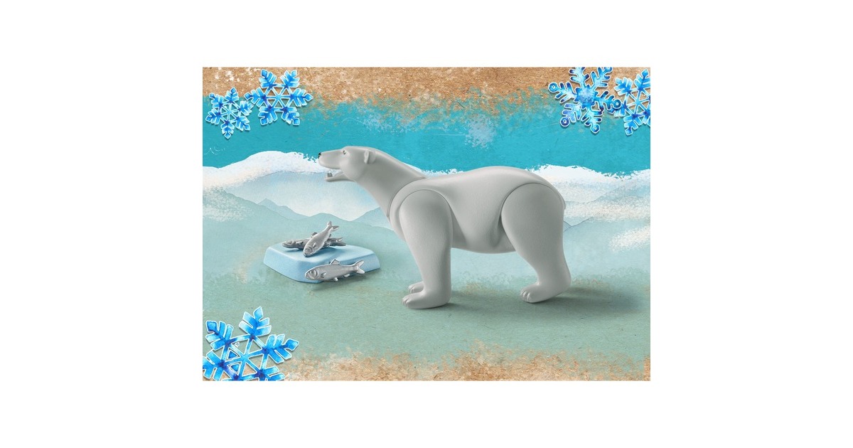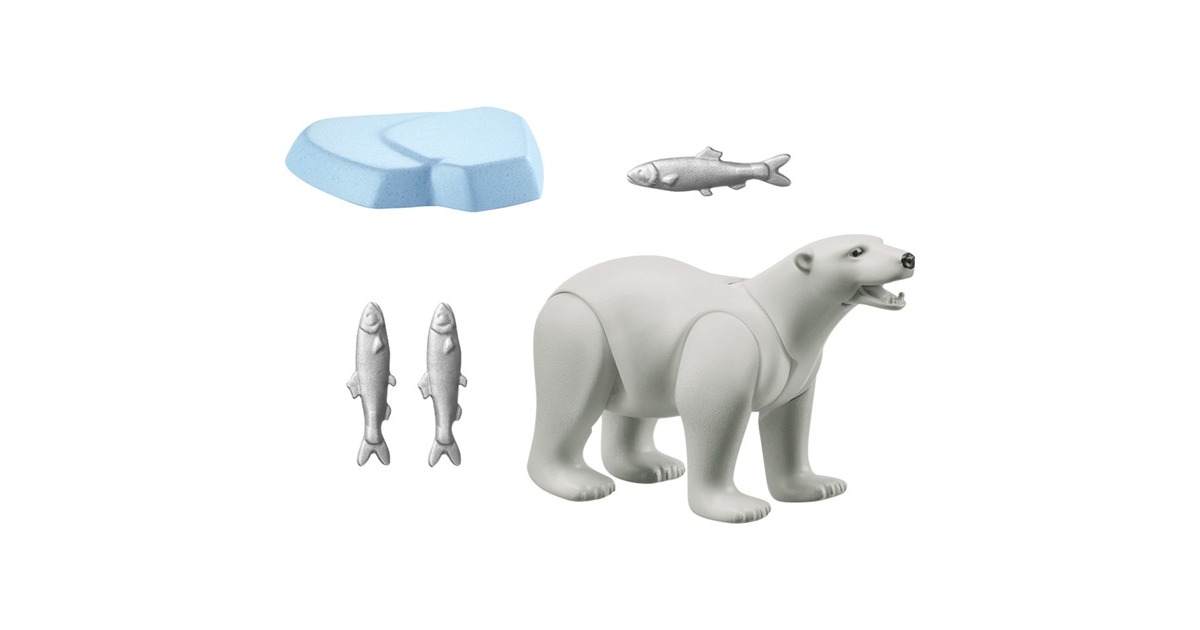 PLAYMOBIL Eisbär inklusive Zubehör, Tierwissenskarte zum Sammeln und spannendem Audio-Content. Die Wiltopia-Reihe von PLAYMOBIL lässt Kinder Tiere und Natur in ihrem eigenen Kosmos entdecken und in fantasievolle Rollenspiele eintauchen. Eisbären, auch Polarbären genannt, gehören zur Familie der Bären. Sie bewohnen die nördlichen Polarregionen und sind eng mit dem Braunbären verwandt. Neben Kamtschatkabären und Kodiakbären gelten Eisbären als die größten an Land lebenden Raubtiere der Erde. Erwachsene männliche Eisbären erreichen eine Kopf-Rumpf-Länge von 2 bis 2,50 Metern - in etwa so hoch wie eine Etage eines Wohnhauses. Ihr gelblich-weißes Fell dient den Eisbären sowohl zur Tarnung als auch als Wärmedämmung. Die Wiltopia-Spielwelt von PLAYMOBIL lädt Kinder dazu ein, spannende und schützenswerte Regionen unserer Welt und ihre zahlreichen tierischen Bewohner zu entdecken und verbindet Spielen und Lernen auf einzigartige Weise. Das PLAYMOBIL-Set enthält eine Eisbärenfigur, eine Schneedecke, Fische und eine Tierwissenskarte. Die Figur kann ihr Unterkiefer aufklappen, den Kopf neigen sowie alle vier Beine einzeln bewegen.Art.-Nr.: 1835580