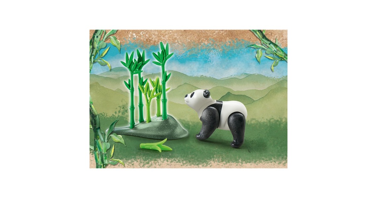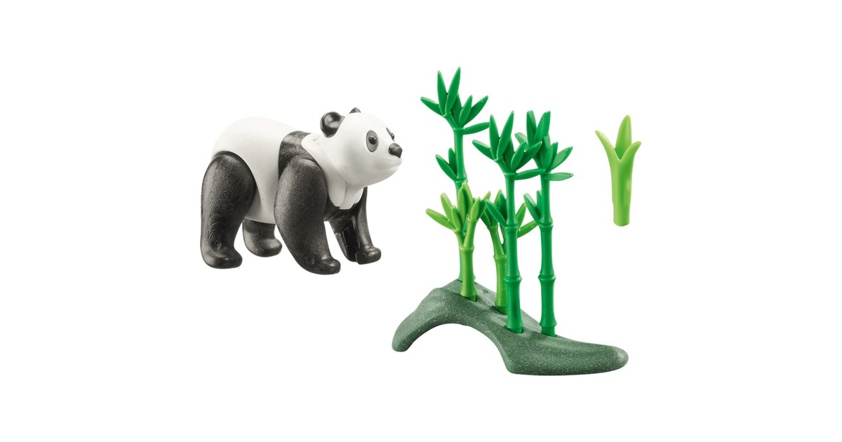 PLAYMOBIL Panda inklusive Zubehör, Tierwissenskarte zum Sammeln und spannendem Audio-Content. Die Wiltopia-Reihe von PLAYMOBIL lässt Kinder Tiere und Natur in ihrem eigenen Kosmos entdecken und in fantasievolle Rollenspiele eintauchen. Das niedliche Aussehen des Pandabären täuscht, denn Pandas sind keine harmlosen Kuschelbären. Wie alle Bären haben sie mächtige Muskeln, ein kräftiges Raubtier-Gebiss und Tatzen mit scharfen Krallen. Wenn jemand in das Revier eines Pandas eindringt oder gar die Jungtiere bedroht, werden die erwachsenen Tiere sehr ungemütlich. Von Natur aus sind Pandas aber sehr sanftmütig und verbringen ihren Tag mit der Suche nach Nahrung und natürlich mit Fressen. Bambus ist ihre bevorzugte Nahrung, davon vertilgen sie bis zu 20 kg pro Tag. Die Wiltopia-Spielwelt von PLAYMOBIL lädt Kinder dazu ein, spannende und schützenswerte Regionen unserer Welt und ihre zahlreichen tierischen Bewohner zu entdecken und verbindet Spielen und Lernen auf einzigartige Weise. Das PLAYMOBIL-Set enthält einen Panda, eine Bambuspflanze, Gras und eine Tierwissenskarte. Der Panda kann seinen Kopf nach oben und unten neigen und alle vier Beine einzeln bewegen.