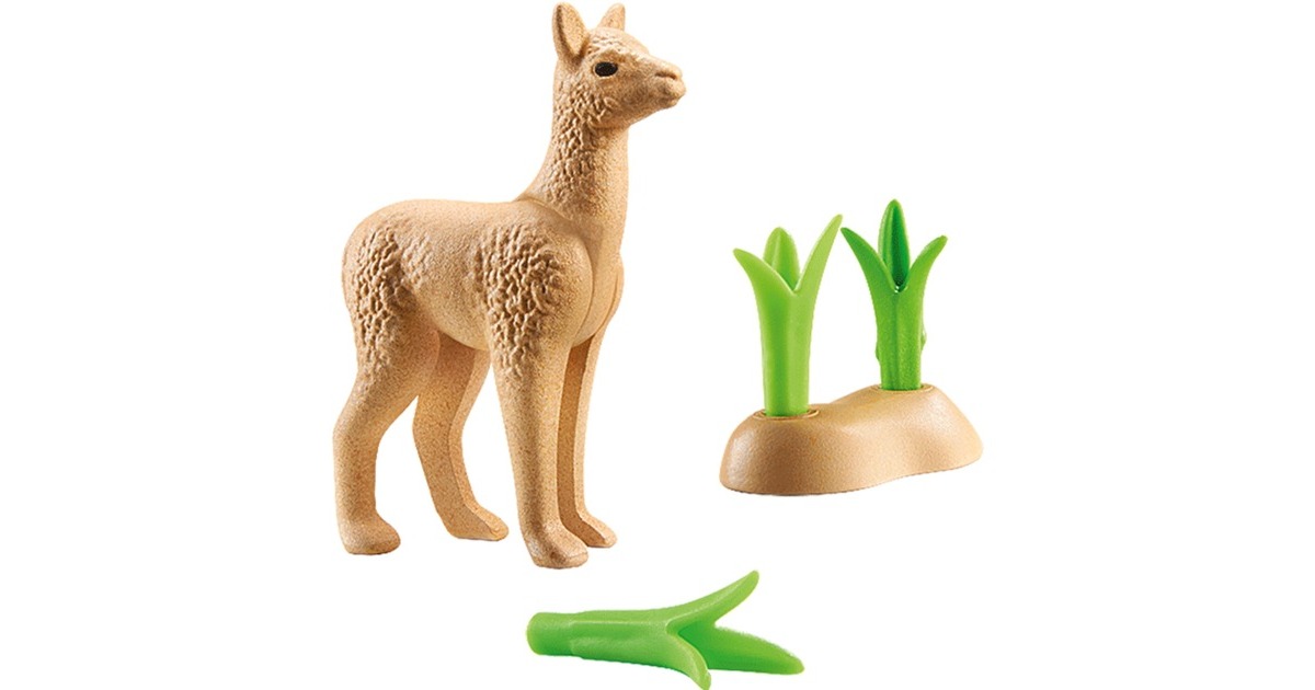 Alpakas gehören, so wie Lamas, zur Familie der Kamele und sind in Südamerika heimisch. Am wohlsten fühlen sich die Tiere mit dem kuschelig-weichen Fell in der Gruppe. Ihre Herde ist für die Tiere sehr wichtig. Ausgewachsene Alpaka Stuten, bringen etwa 55 – 65 Kilogramm auf die Waage, also in etwa so viel wie zwei achtjährige Kinder. Die männlichen Tiere, Hengste genannt, wiegen etwas mehr. Die Wiltopia-Spielwelt von PLAYMOBIL lädt Kinder dazu ein, spannende und schützenswerte Regionen unserer Welt und ihre zahlreichen tierischen Bewohner zu entdecken und verbindet Spielen und Lernen auf einzigartige Weise.