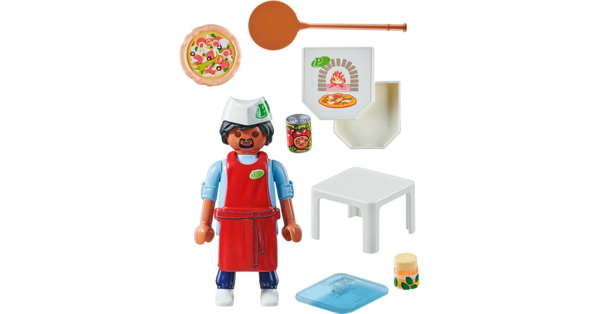 Die PLAYMOBIL-Figuren aus der Serie specialPLUS kommen mit einem Plus an Zubehör - und damit auch mit besonders viel Spielspaß! Der Pizzabäcker zaubert die tollsten Pizza-Kreationen und ist mit einem langen Pizza-Schieber ausgestattet. Für die Auslieferung seiner Leckereien liegt bereits ein großer Pizzakarton bereit.Art.-Nr.: 1888910
