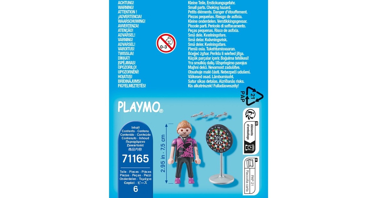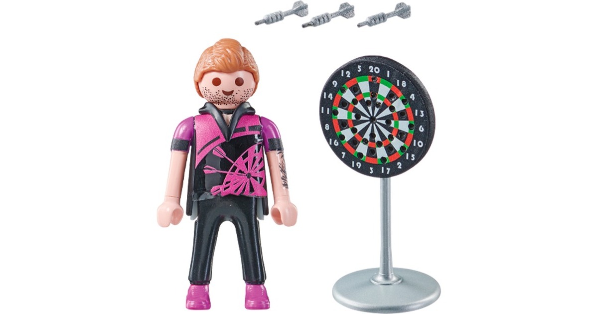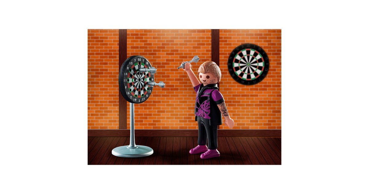 Die PLAYMOBIL-Figuren aus der Serie specialPLUS kommen mit einem Plus an Zubehör - und damit auch mit besonders viel Spielspaß! Der Dartspieler übt für das nächste große Turnier - oder auch einfach nur für den Abend in der Kneipe. Die mitgelieferten Pfeile können in die Dartscheibe gesteckt werden. Art.-Nr.: 1888925