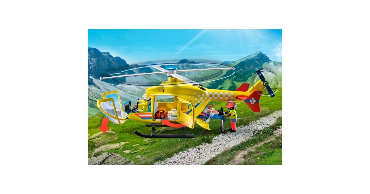 Starte zu spannenden Such- und Rettungsflügen mit dem modernen Rettungshelikopter von PLAYMOBIL. Der detailreiche Helikopter besitzt bewegliche Rotorblätter sowie Seitentüren, Heckklappe und Kanzelfenster zum Öffnen. Im Cockpit ist Platz für zwei Piloten. Verletzte Patientinnen und Patienten können auf der Rettungsliege in den Hubschrauber geschoben und ins Krankenhaus geflogen werden. Zur Erstversorgung an der Unfallstelle sind Arztkoffer und Erste-Hilfe Ausrüstung mit an Bord. Ein detailreiches Spielzeugset für wissbegierige Kinder, die gerne in den Alltag von Rettungshelfern eintauchen möchten. Das PLAYMOBIL-Spielzeug für Kinder ab 4 Jahren enthält drei PLAYMOBIL-Figuren, einen Rettungshubschrauber, eine Krankentransportliege, Erste-Hilfe-Set, Verbandskoffer und viele weitere Extras für aufregende Spielaction im Kinderzimmer. Mit den beiliegenden Verbandsetiketten können die Verletzten individuell versorgt werden. Die Rollbeine der Liege können eingeklappt und die Liege kann von zwei Personen an Griffen getragen werden. Die PLAYMOBIL City Life Reihe beinhaltet moderne Fahrzeuge und realitätsgetreue Modelle, mit denen Kinder wichtige Fähigkeiten und Selbstvertrauen entwickeln können.