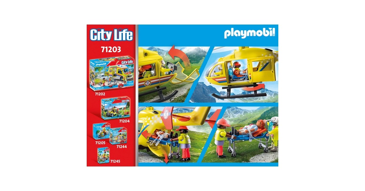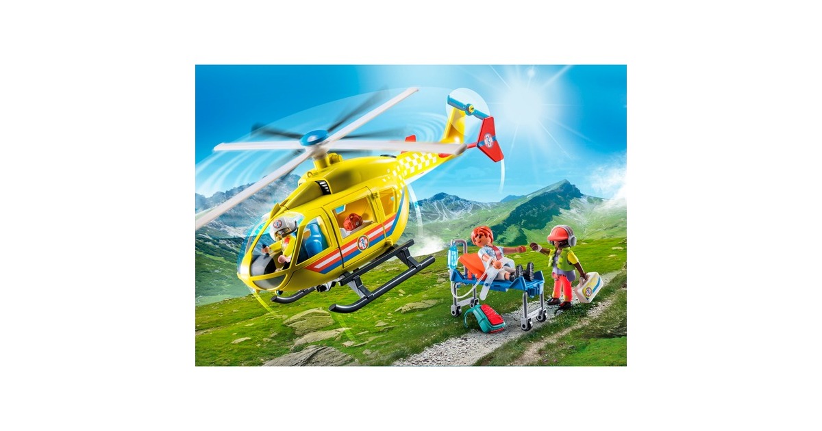 PLAYMOBIL-Rettungshelikopter in moderner Optik! Mit der Rettungstrage kann die verletzte Wanderin transportiert werden. Die Rotorblätter sind beweglich. Maße: 36 x 13 x 16,5 cm (LxTXH) |