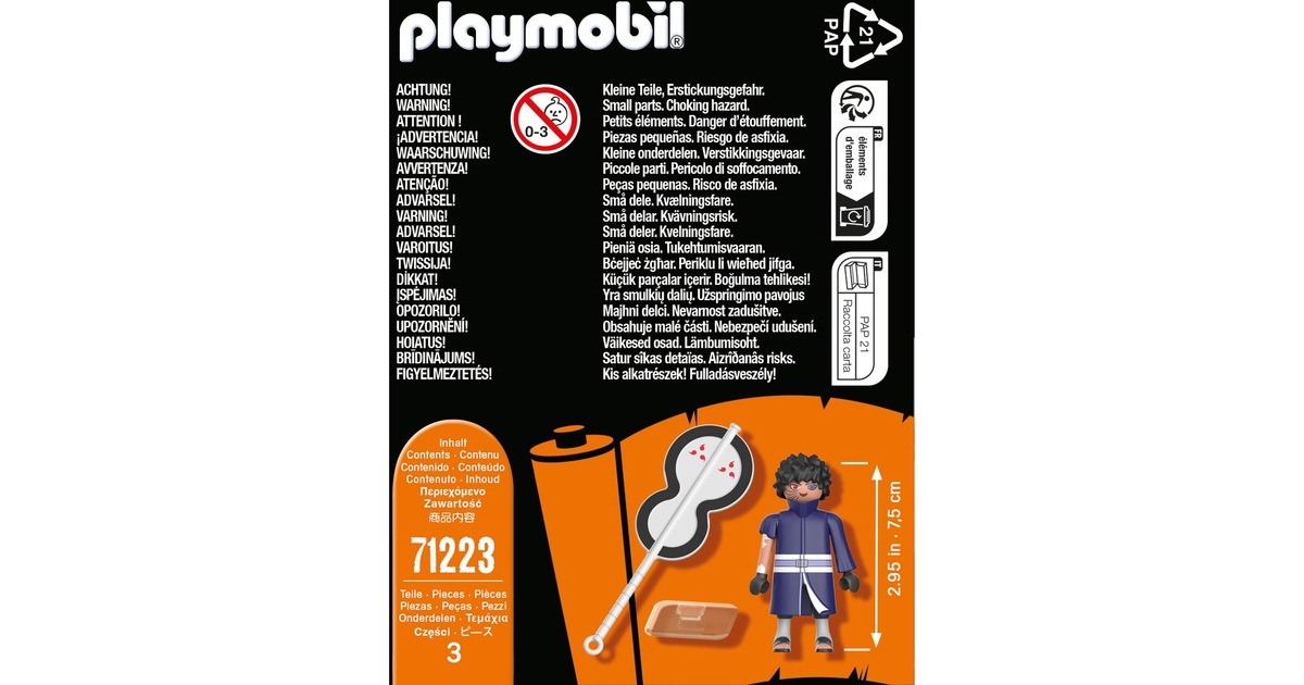 Das Anime-Universum von PLAYMOBIL enthält coole Figuren mit originalgetreuen Accessoires - ein Blickfang in jeder Fan-Vitrine! Dieses Set enthält Obito aus der Erfolgsserie "Naruto Shippuden". Die Figur ist mit der Fächerwaffe Gunbai und einem Mantel ausgestattet.Art.-Nr.: 100035533