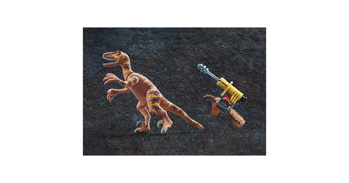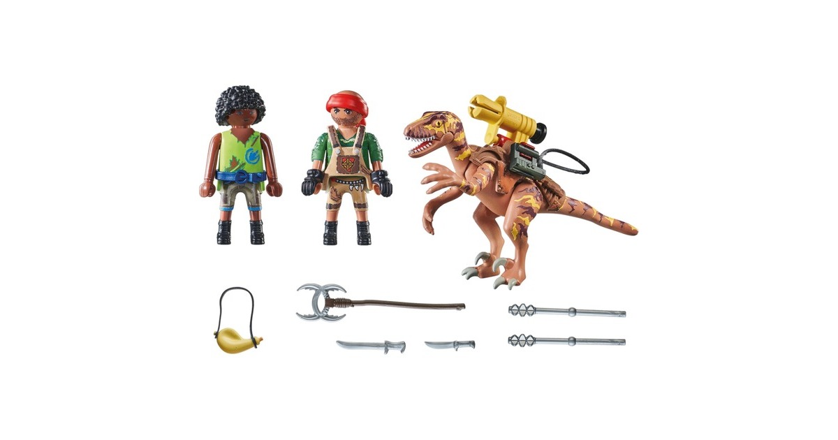Figuren: Jaden und 1 Mitglied der Gegenpartei. Tiere: 1 Deinonychus;. Zubehör: Handschuhe für die Figuren, 1 Messer, 1 Lanze, 1 Buschmesser, 1 Kanone, 2 Geschosse. |