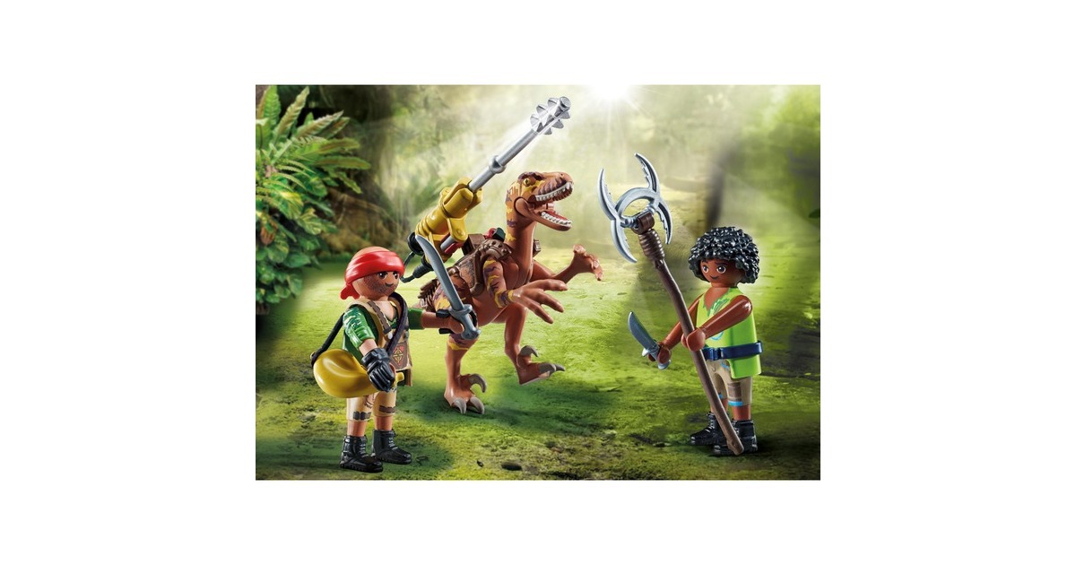 Ein spannendes Dino-Abenteuer aus der Welt von PLAYMOBIL Dino Rise! Diese Spielwelt liefert mit originellen Charakteren, eindrucksvollen Dinosauriern und raffinierten Rüstungen jede Menge Stoff für actionreiche Spielabenteuer im Kinderzimmer. Mit diesem Set muss sich das Teen-Team im grünen Dickicht des Dschungels beweisen, denn auch hier lauern Gefahren für Dinosaurier und Menschen. Die Schurken haben sich einen Deinonychus geschnappt und mit einem Panzeraufsatz mit Kanone ausgestattet. Das will Jaden nicht einfach so hinnehmen und stellt sich dem Bösewicht entgegen. Art.-Nr.: 1889017