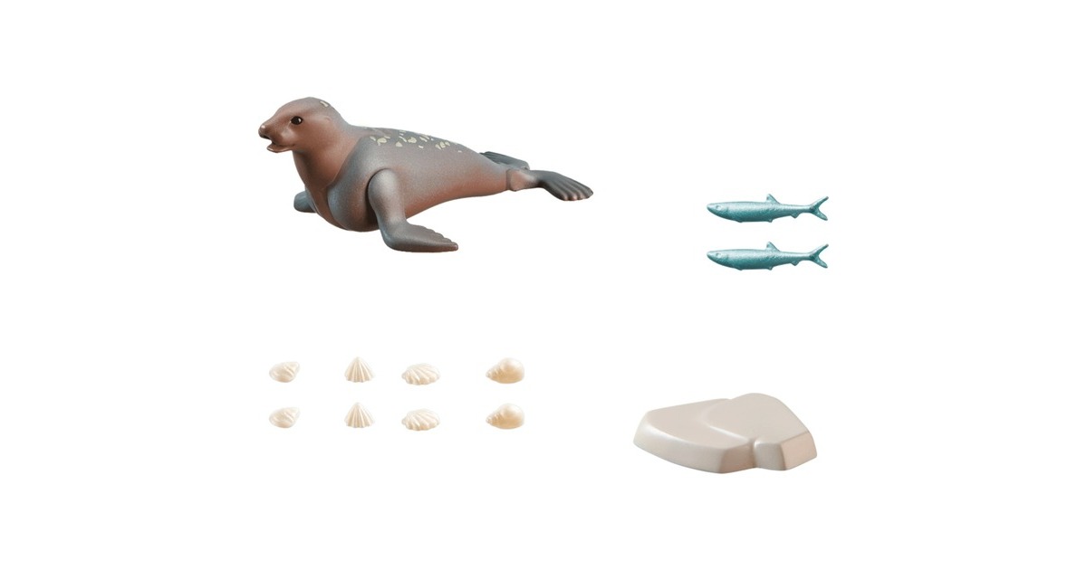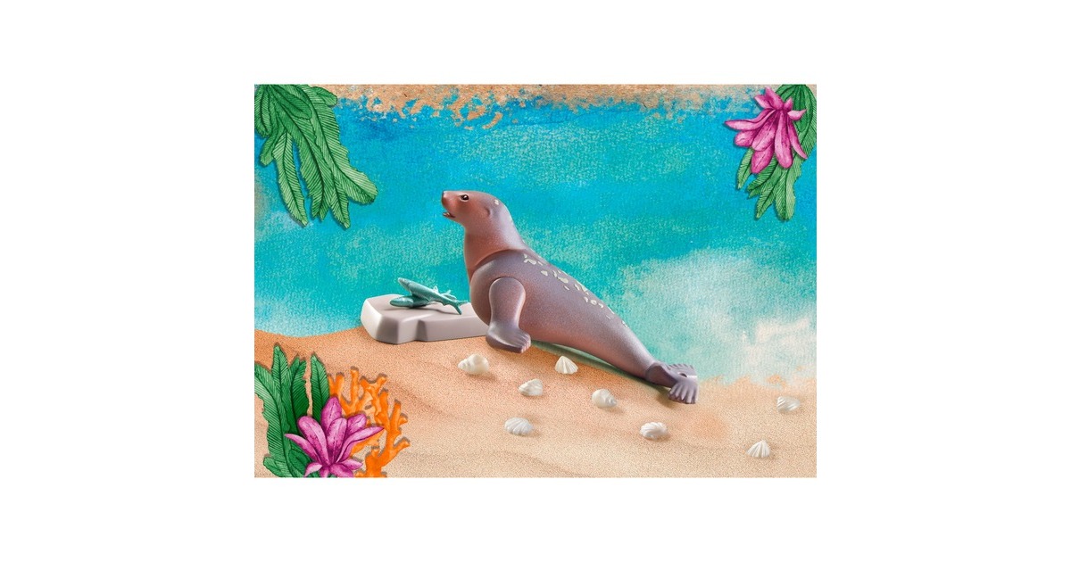 Die Wiltopia-Spielwelt von PLAYMOBIL lädt Kinder dazu ein, spannende und schützenswerte Regionen unserer Welt und ihre zahlreichen tierischen Bewohner zu entdecken und verbindet Spielen und Lernen auf einzigartige Weise. Der mächtige Seelöwe thront auf einem flachen Felsen. Mit dabei sind außerdem zwei Fische und Muscheln.