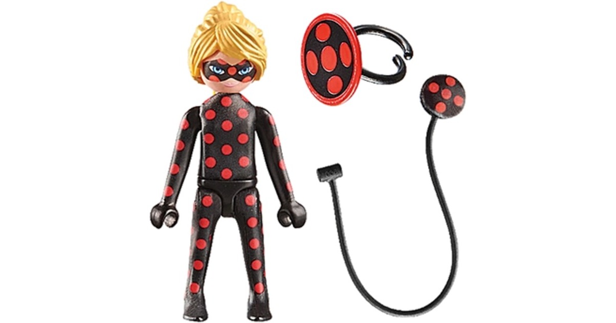 Mit den PLAYMOBIL-Sets der Serie Miraculous wird die zauberhafte Welt der Serie rund um die Superheldin Marinette lebendig! Mit diesem Set wird Chloé zu ihrem Schurken-Alter-Ego Antibug. Die Figur trägt ihre typisches Yo-Yo. Mit dabei ist außerdem ein Ring, den Kinder am Finger tragen können.Art.-Nr.: 100035556