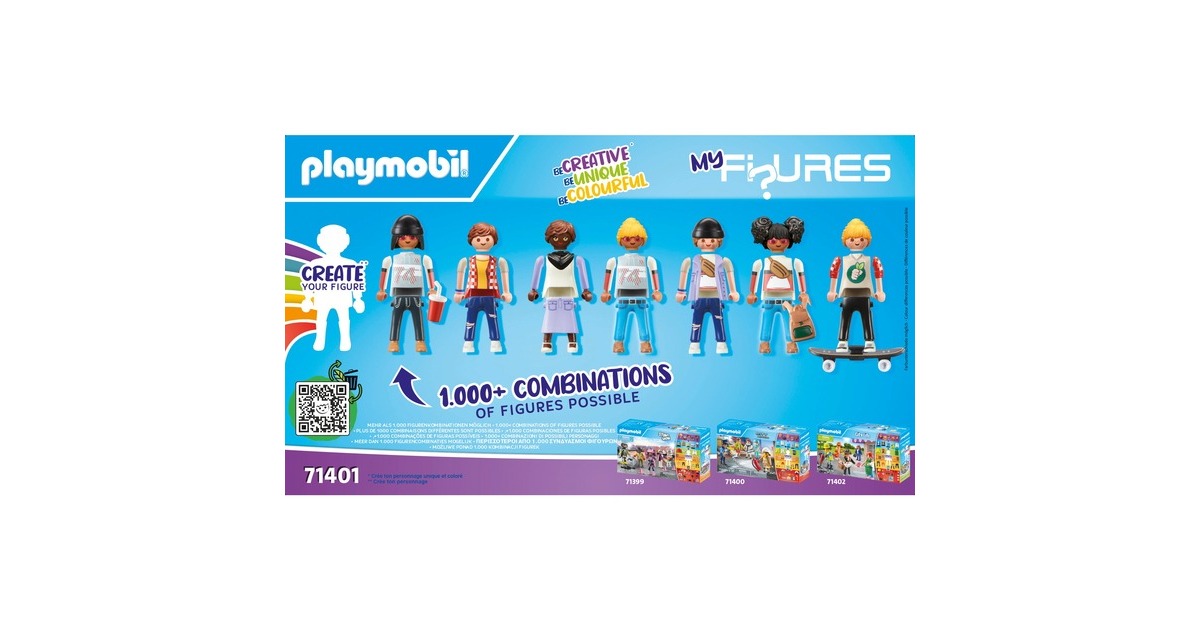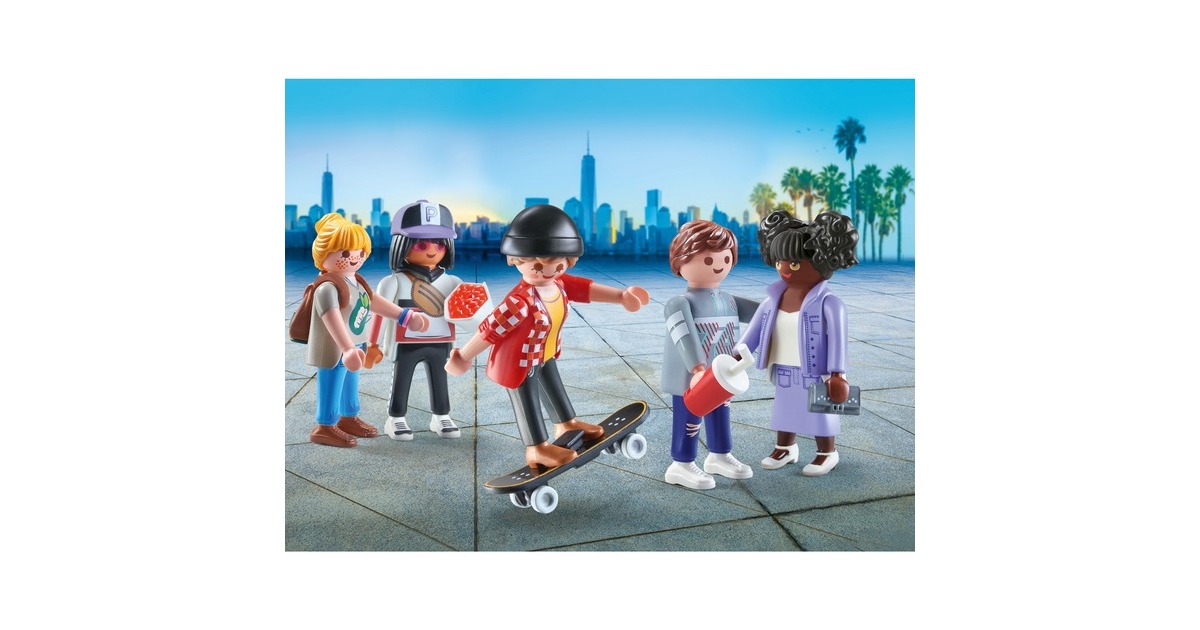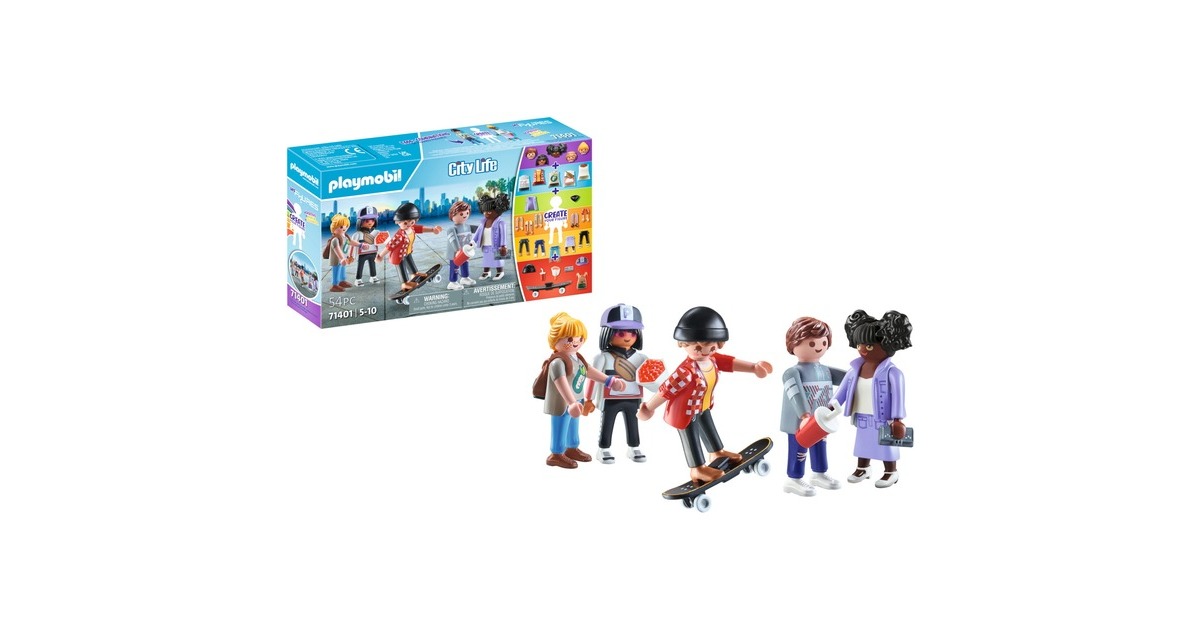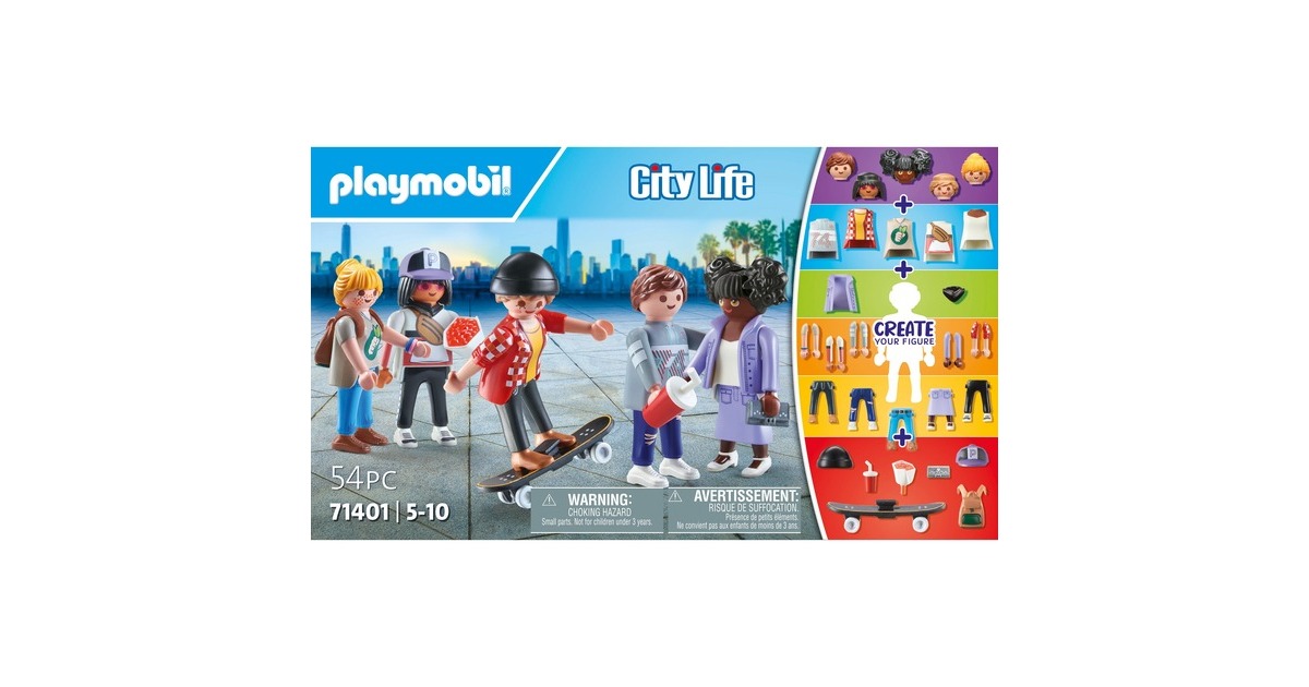 Mit My Figures von PLAYMOBIL können Kinder jetzt eine Welt ganz nach ihren Vorstellungen erschaffen und dabei ihre Kreativität entfalten. Jedes Set enthält Figuren in Einzelteilen, welche immer wieder neu zusammengestellt werden können. Arme, Beine, Körper und Accessoires sind ganz schnell getauscht und ergeben Spielfiguren, die so bunt sind wie das Leben - mit jeder Menge Kombinationsmöglichkeiten. Dieses Set enthält fünf trendige Figuren zum Thema City Life: Einen Skateboarder, zwei Passanten mit Snack, Rucksack und Umhängetasche und zwei weitere Figuren mit trendiger Jacke, Brieftasche und Getränkebecher. Oder aber auch ganz andere Personen aus dem städtischen Leben - hier kann ganz nach Belieben kombiniert werden!Art.-Nr.: 1889179