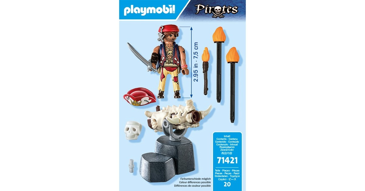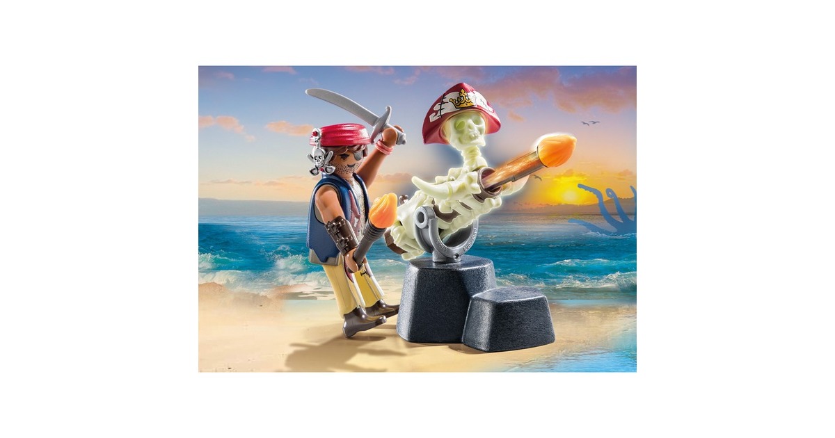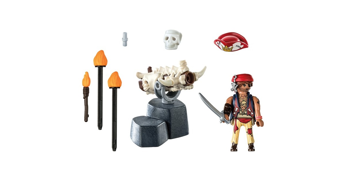 Der Kanonenmeister ist stets abschussbereit: Diese Figur aus der Welt von PLAYMOBIL Pirates verfehlt mit ihrer Knochenkanone niemals ihr Ziel. Mit seinen Feuergeschossen schlägt er alle Angreifer in der die Flucht. Armbänder, die Ledermanschette und das Stirnband können der Figur abgenommen werden.Art.-Nr.: 100034230
