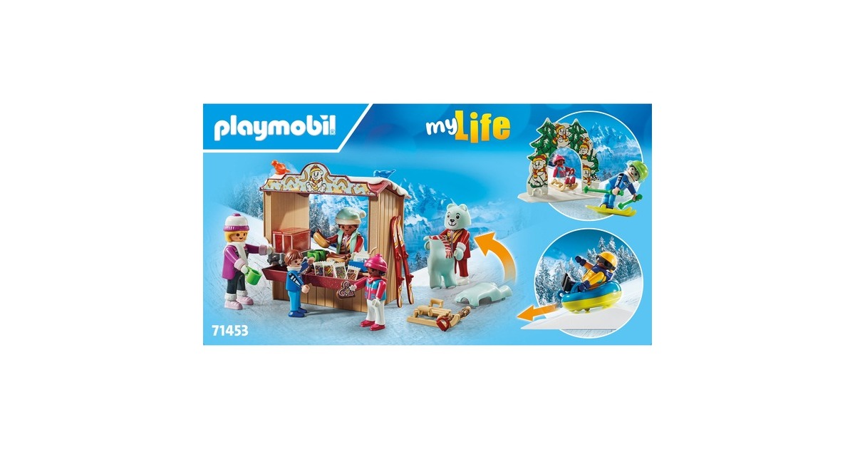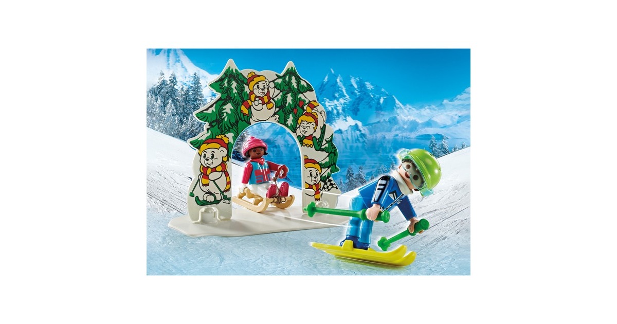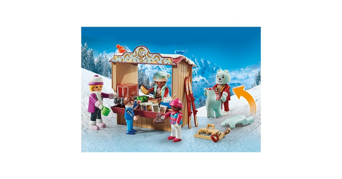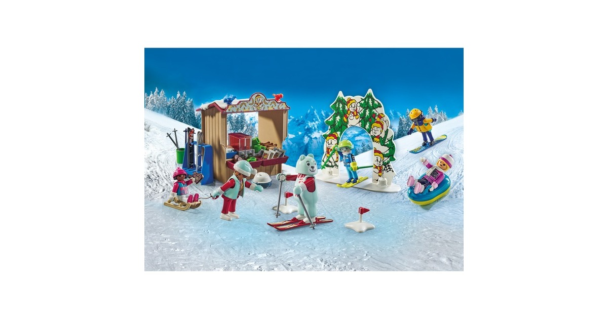 Auf geht's ins winterliche Vergnügen in PLAYMOBIL-City! Skifahren, Snowboarden oder eine rasante Fahrt auf dem Rutschreifen - all das ist in der Skiwelt möglich. Und wenn der Hunger kommt, geht es zum Essens-Stand, wo es Hotdogs und Plätzchen gibt. Aber wer ist das eigentlich, der da im Bärenkostüm die Piste herunter fährt? Ein tolles Set für Ski-Freunde ab 4 Jahren, das viel Zubehör und insgesamt sechs PLAYMOBIL-Figuren enthält.Art.-Nr.: 100034110