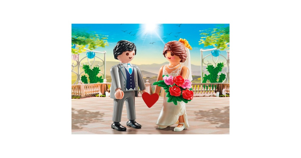 Die DuoPacks von PLAYMOBIL enthalten jeweils zwei Figuren mit passendem Zubehör - für dynamischen Spielspaß zu einem bestimmten Thema. Dieses Pack enthält ein Hochzeitspaar mit Herz und Blumenstrauß. Die Figuren können mit dem Herz verbunden werden und so Händchen halten.Art.-Nr.: 100034710