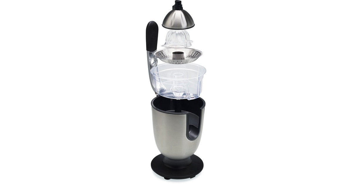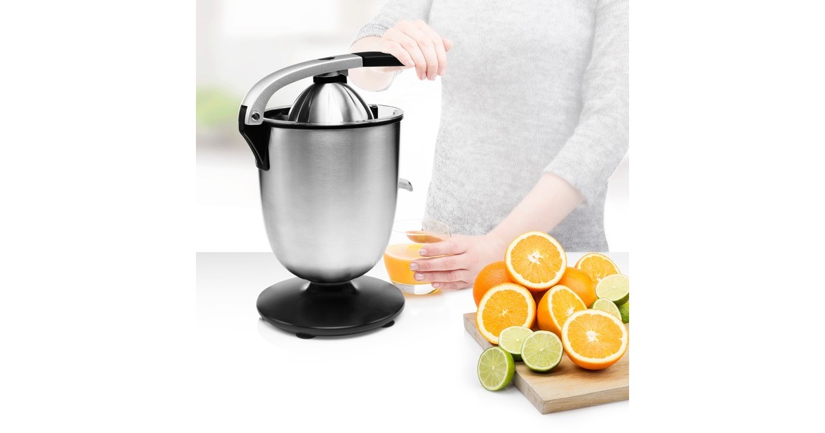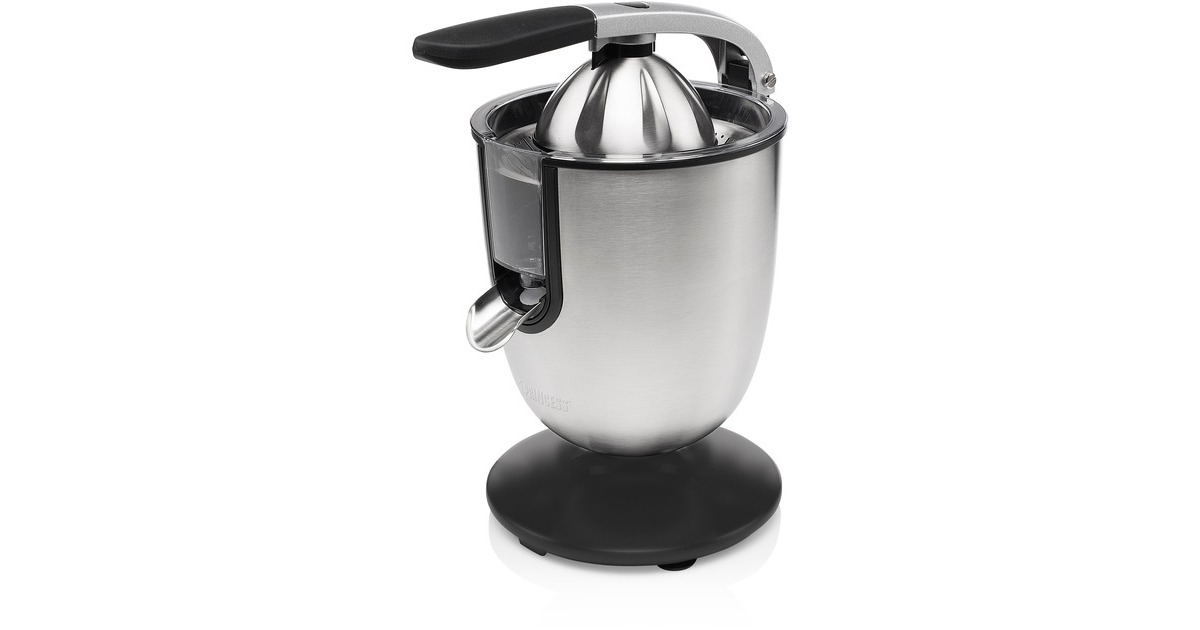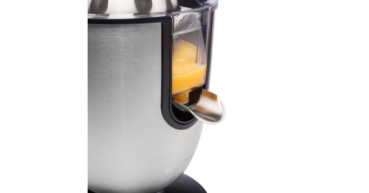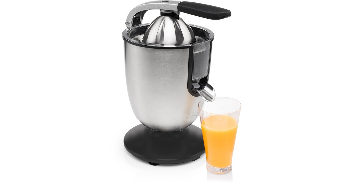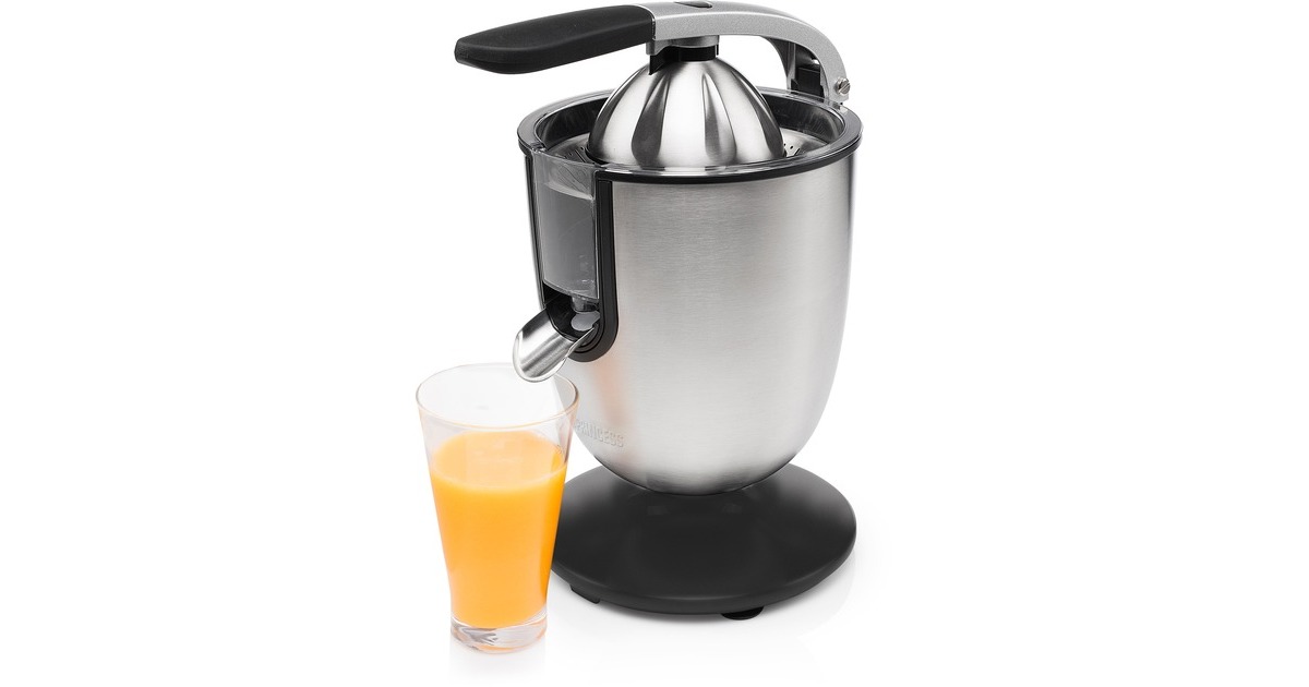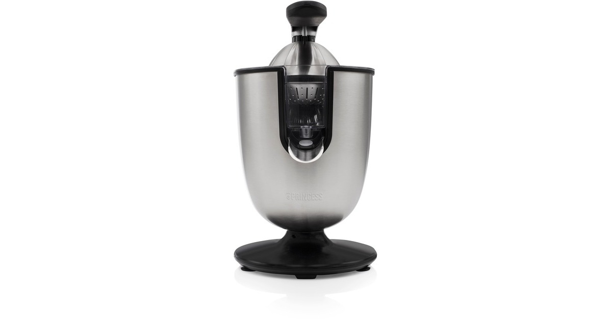 Das Auspressen von Zitrusfrüchten wie Orangen wird mit dem Princess Champion Juicer Pro zum Kinderspiel. Diese leistungsstarke Zitruspresse verfügt über einen Hebel, einen Presskegel aus Edelstahl und einen einstellbaren Fruchtfleischfilter. Außerdem verfügt sie über eine Leistung von 300 Watt, sodass alle kleinen und großen Zitrusfrüchte ausgepresst werden können, sogar Granatäpfel! Das komplette Gehäuse besteht aus Edelstahl. Dies gilt auch für den Presskegel und den Fruchtfleischfilter. Die Zitruspresse ist zum mit Anti-Rutsch-Füßen ausgestattet, sodass sie auch während des Auspressens stets stabil auf der Küchenarbeitsplatte steht. Darüber hinaus besticht der Princess Edelstahl-Entsafter durch ein schickes Design, bei dem Edelstahl mit schwarzen Elementen kombiniert wurde – eine wahre Schönheit in der Küche. Für eine einfache Reinigung nach dem Gebrauch sind alle abnehmbaren Komponenten spülmaschinenfest.