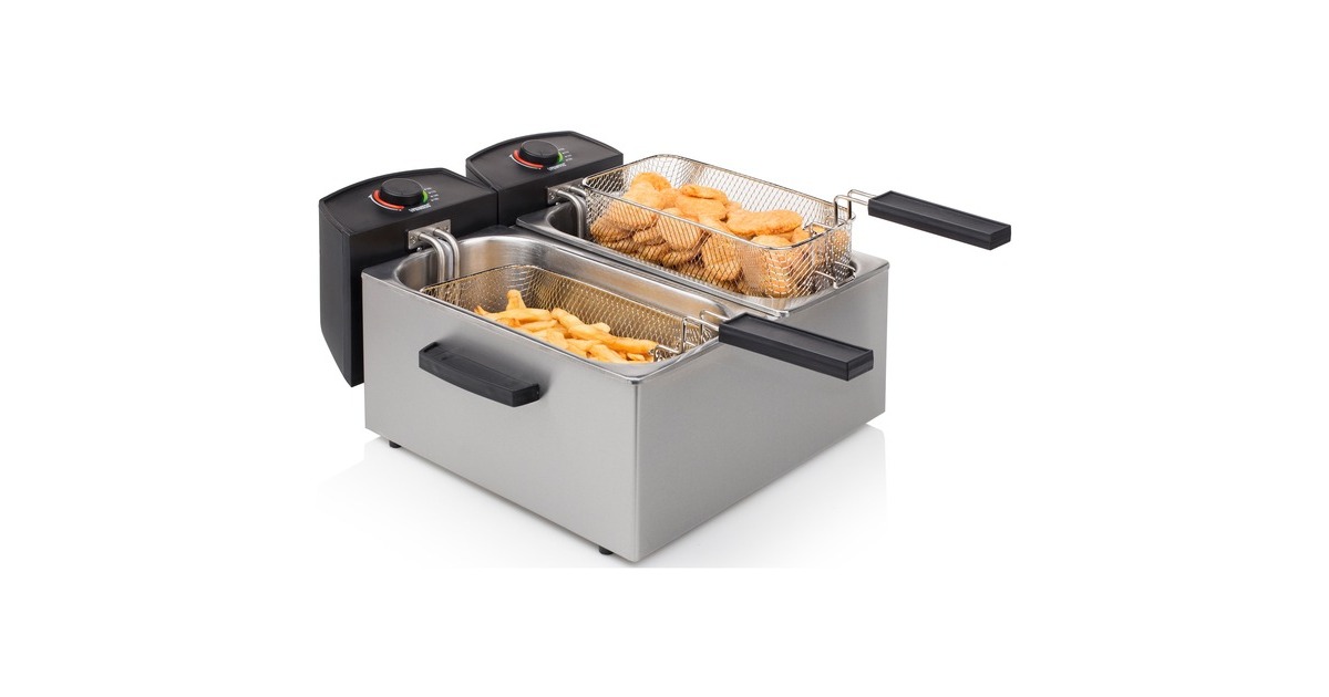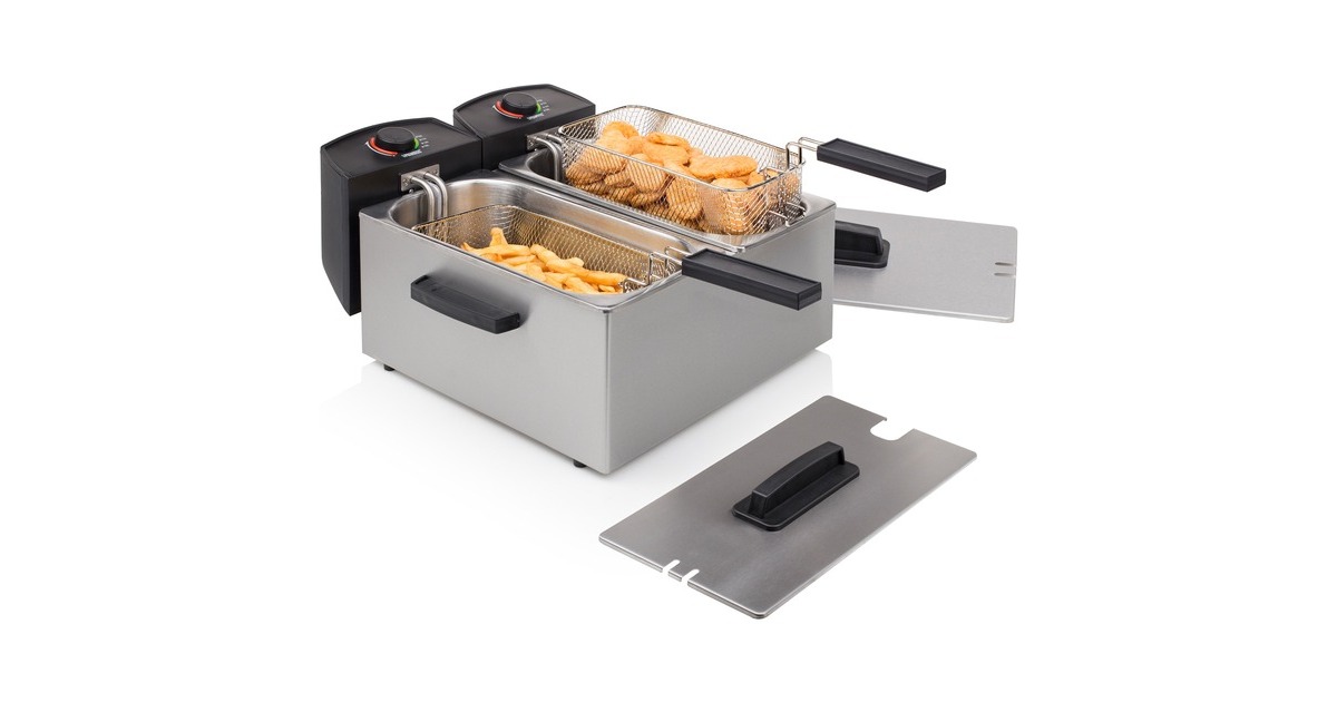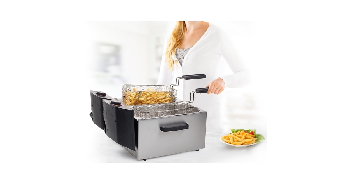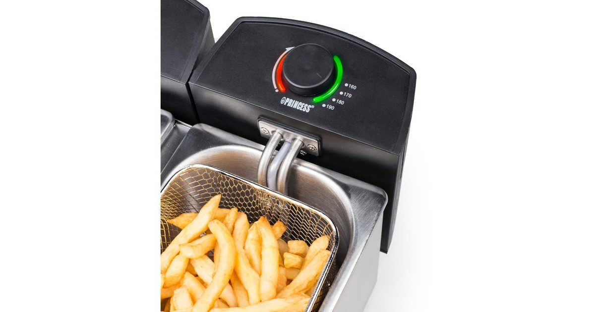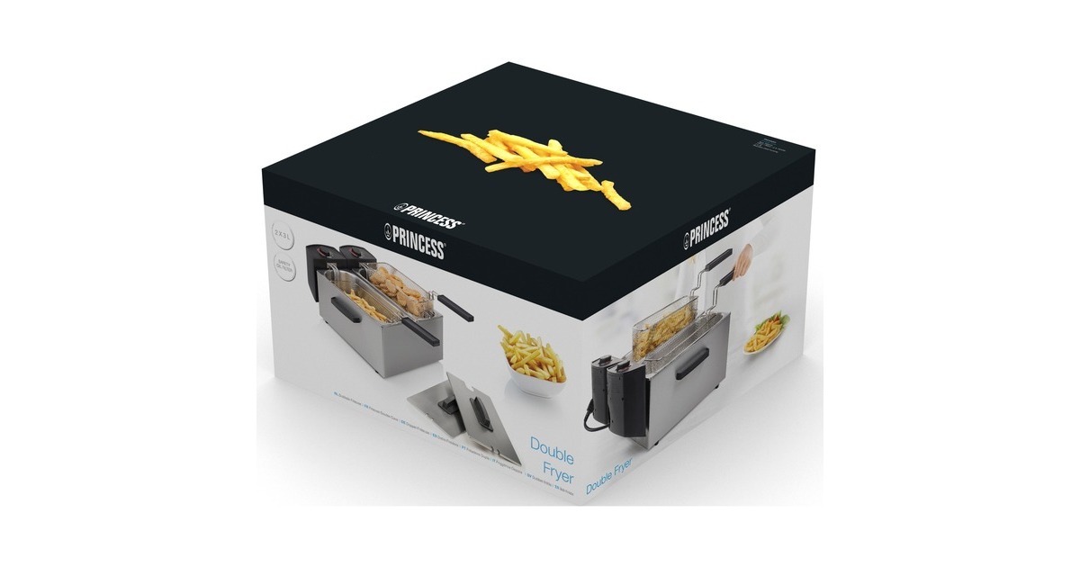 Mit der leistungsstarken Princess 183123 Doppel-Fritteuse kann man die zweifache Menge an Fisch und Pommes Frites für die Familie gleichzeitig garen. Dank einer Leistung von 2 x 1800 Watt wird die Fritteuse sehr schnell heiß. Ab sofort braucht man sich dank der Kaltzone und des innovativen Schutzfilters, der das Verspritzen von Fett und ein Übergaren verhindert, keine Sorgen mehr über verbrannte Stücke zu machen. Die Filter können auch benutzt werden, um das Fett zu filtern und viel länger sauber zu halten. Beide Frittierbehälter haben zwar einen gemeinsamen Stecker, können aber getrennt benutzt werden. Viele Fritteusen haben das Problem, dass kleine Krümel durch den Korb fallen und verbrennen, wenn das Fett mehr als einmal verwendet wird. Die Princess Doppel-Fritteuse verfügt über eine besondere Kaltzone, die das verhindert. Kleine Partikel werden in der Kaltzone unterhalb des Heizelements aufgefangen und verbrennen daher nicht. Mit dem Fettschutzfilter können all diese Partikel herausgefiltert werden. Das Fett bleibt dadurch erheblich länger sauber und es bilden sich keine schwarzen, ungesunde Rückstände auf den Pommes Frites. Der innovative Schutzfilter der Princess Fritteuse verteilt die Wassertropfen, die beim Frittieren von Tiefgefrorenem entstehen, so dass es weniger Spritzer gibt. Das Frittieren wird dadurch sicherer, und die Arbeitsplatte bleibt von Fettspritzern verschont. Die Princess Fritteuse hat einen Hauptstecker, so dass man für den Betrieb nur eine Steckdose braucht. Die beiden Heizelemente sind miteinander verbunden und lassen sich leicht abnehmen. Außerdem hat die Fritteuse zwei separate Thermostate, so dass jeder Behälter einzeln geregelt werden kann und Pommes Frites, Fisch oder Snacks gleichzeitig bei jeweils idealer Temperatur zubereitet werden können. Die Fettbehälter der Princess Fritteuse können einfach herausgenommen werden, zum Beispiel zum Austauschen des Fetts oder zum Reinigen der Behälter. Alle Teile der Fritteuse sind abnehmbar und überwiegend spülmaschinenfest. Die Griffe am Frittierkorb können außerdem eingeklappt werden. Auf diese Weise lässt sich das Gerät leicht reinigen und verstauen.Art.-Nr.: 1466802