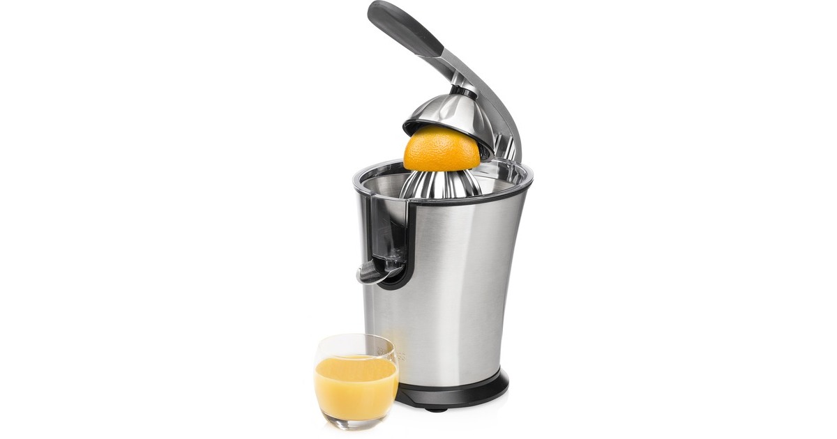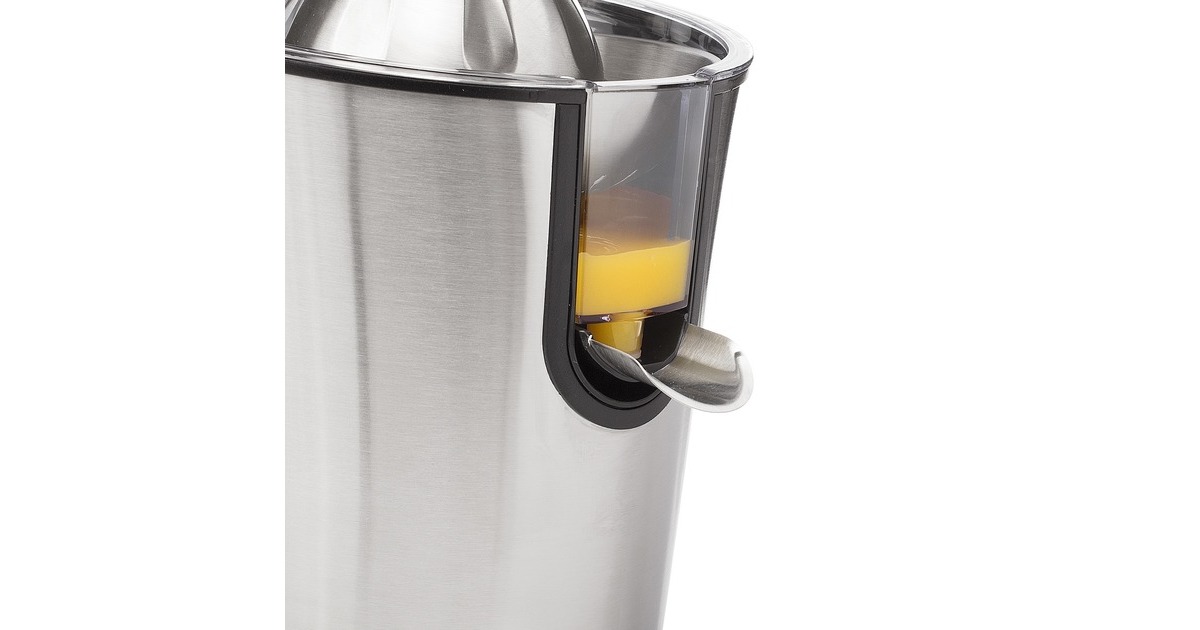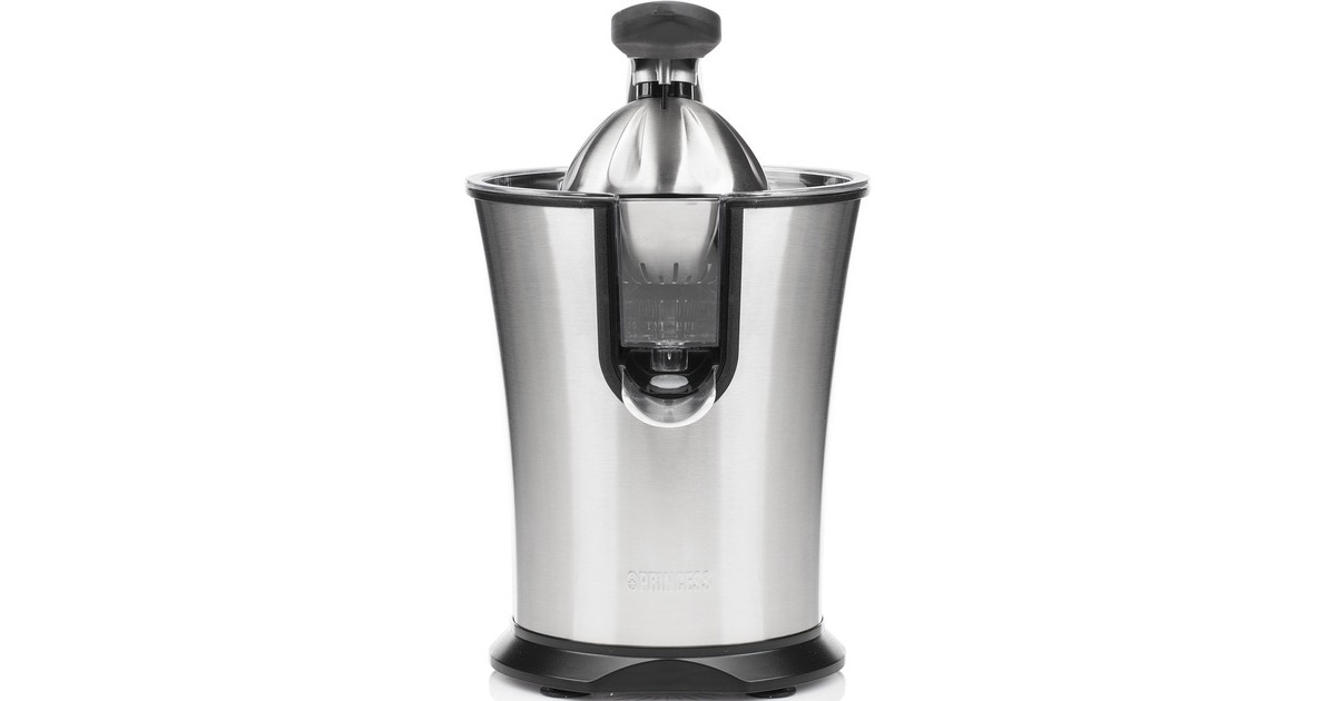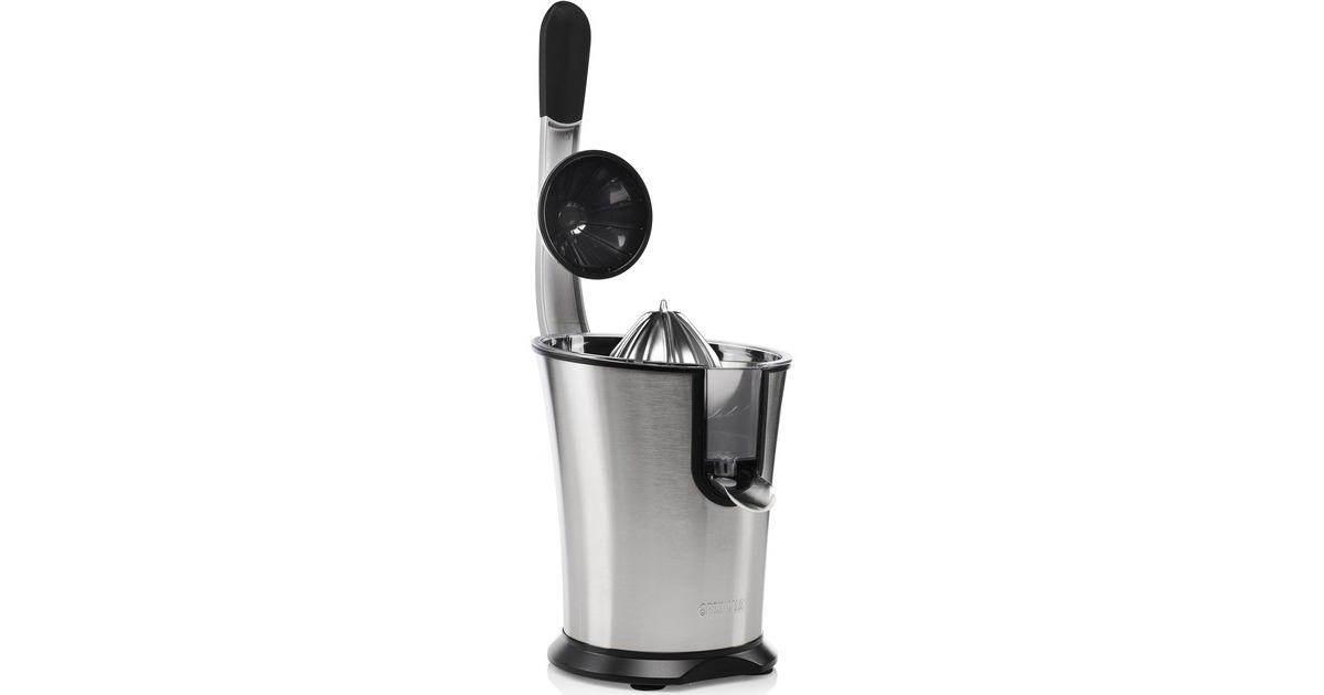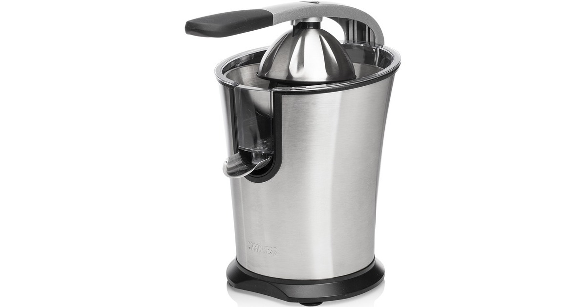 Das Pressen von Zitrusfrüchten wie Orangen ist mit dem Princess Master Juicer Pro ein Kinderspiel. Diese leistungsstarke Zitruspresse hat einen Griff und einen Edelstahlkonus sowie ein Fruchtfleischfilter. Sie verfügt über 300 Watt Leistung, sodass man große und kleine Zitrusfrüchte pressen kann – sogar Granatäpfel. Das gesamte Gehäuse ist aus Edelstahl gefertigt. Das gilt auch für den Konus und den regulierbaren Fruchtfleischfilter. Der Entsafter verfügt über einen Hebel, mit dem sich die Zitrusfrüchte einfach und schnell auspressen lassen. Perfekt, um viele Gläser Orangensaft in kürzester Zeit zuzubereiten. Somit eignet sich diese professionelle Orangenpresse ideal für das Gaststättengewerbe oder bei Anlässen, für die viele Früchte gepresst werden müssen. Die Presse ist mit rutschhemmenden Füßen ausgestattet, sodass sie immer fest auf der Arbeitsplatte steht, auch während des Auspressens. Darüber hinaus hat die Zitruspresse Princess Juicer Pro ein schickes Design, bei dem Edelstahl mit schwarzen Elementen kombiniert wurde – eine wahre Schönheit für die Küche. Nach der Verwendung lässt sie sich einfach zerlegen und dank des robusten Edelstahlmaterials können sämtliche Teile des Master Juicer Pro in dem Geschirrspüler gereinigt werden.