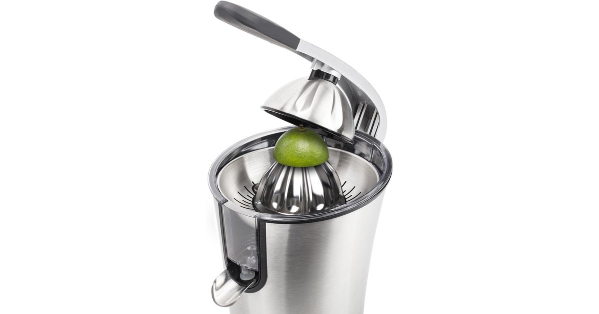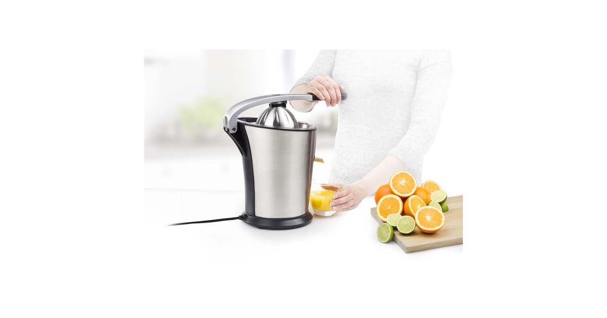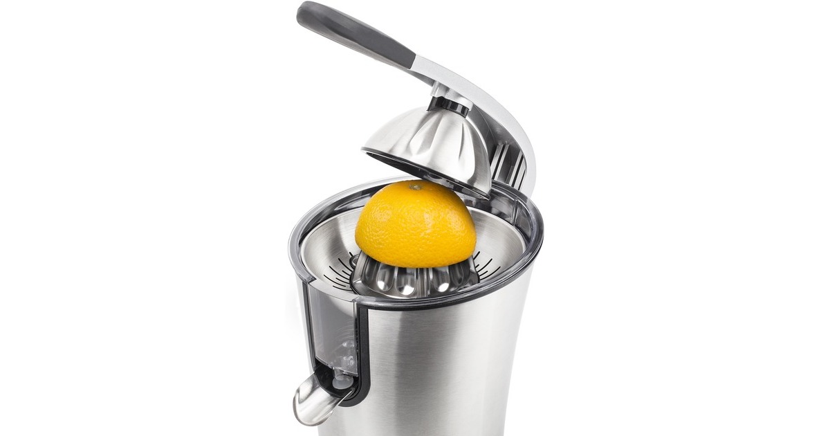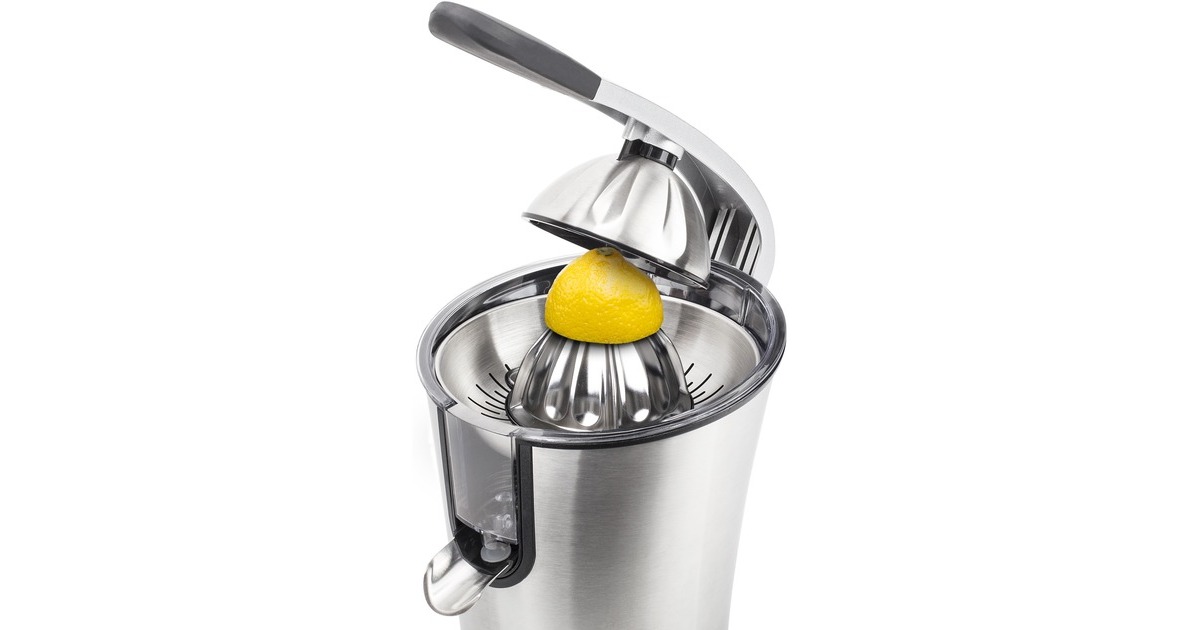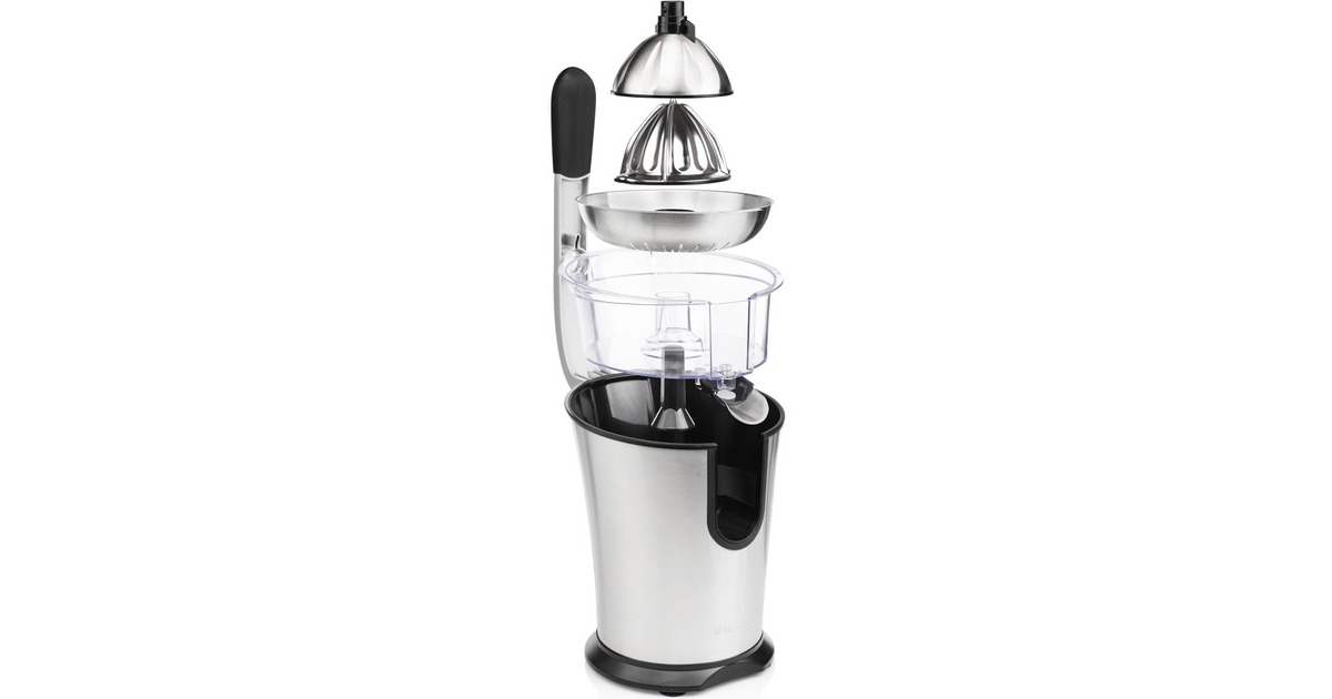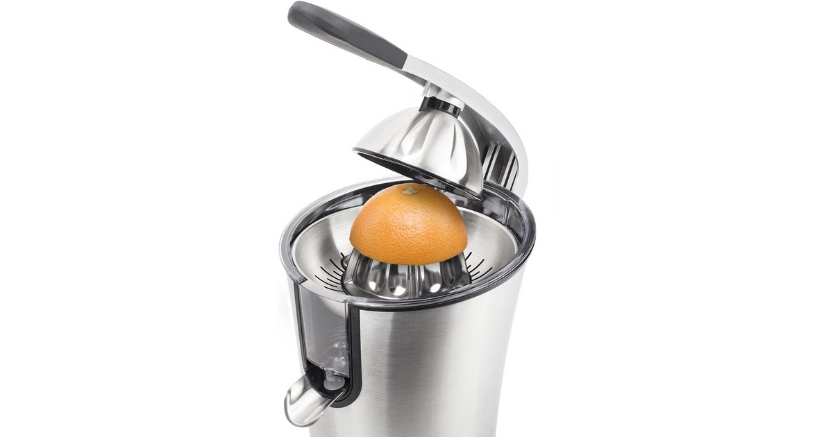 Das Pressen von Zitrusfrüchten wie Orangen ist mit dem Princess Master Juicer Pro ein Kinderspiel. Diese leistungsstarke Zitruspresse hat einen Griff und einen Edelstahlkonus sowie ein Fruchtfleischfilter. Sie verfügt über 300 Watt Leistung, sodass man große und kleine Zitrusfrüchte pressen kann – sogar Granatäpfel. Das gesamte Gehäuse ist aus Edelstahl gefertigt. Das gilt auch für den Konus und den regulierbaren Fruchtfleischfilter. Der Entsafter verfügt über einen Hebel, mit dem sich die Zitrusfrüchte einfach und schnell auspressen lassen. Perfekt, um viele Gläser Orangensaft in kürzester Zeit zuzubereiten. Somit eignet sich diese professionelle Orangenpresse ideal für das Gaststättengewerbe oder bei Anlässen, für die viele Früchte gepresst werden müssen. Die Presse ist mit rutschhemmenden Füßen ausgestattet, sodass sie immer fest auf der Arbeitsplatte steht, auch während des Auspressens. Darüber hinaus hat die Zitruspresse Princess Juicer Pro ein schickes Design, bei dem Edelstahl mit schwarzen Elementen kombiniert wurde – eine wahre Schönheit für die Küche. Nach der Verwendung lässt sie sich einfach zerlegen und dank des robusten Edelstahlmaterials können sämtliche Teile des Master Juicer Pro in dem Geschirrspüler gereinigt werden.
