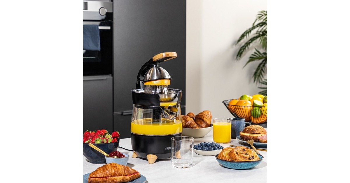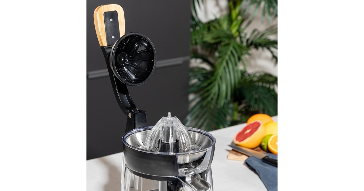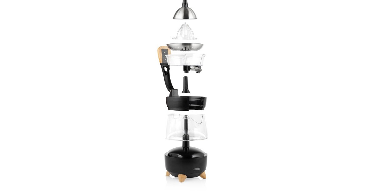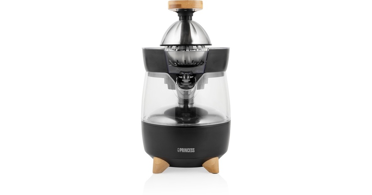 Dank der Verarbeitung von echtem Bambus und dem mattschwarzen Gehäuse ist die Princess 201862 Zitruspresse Pure ein echter Blickfang in jeder trendigen Küche. Der 3-Wege-Auslauf des Entsafters ist einzigartig in seiner Art und dank des Anti-Tropf-Systems bleibt die Arbeitsplatte sauber. Mit einer einfachen Handbewegung lässt sich wählen, ob nur ein Glas oder die ganze Kanne gefüllt werden soll. Der innovative Presskegel in Kombination mit dem leistungsstarken 300-W-Motor sorgt für einen perfekt frisch gepressten Saft. Der Presskegel ist so konzipiert, dass er für jede Größe von Zitrusfrüchten geeignet ist, von der Limette bis zum Granatapfel. Ideal für einen herrlichen Sonntagmorgen! Der Entsafter hat einen 3-Wege-Ausguss, wobei die neutrale Position als Tropfstopp dient. Wird der Ausguss nach unten gedrückt läuft der frisch gepresste Saft direkt in ein Glas – ideal, wenn nur ein oder zwei Gläser benötigt werden. Wird der Ausguss nach oben gedrückt, fließt der Saft in den 1-Liter-Krug und kann direkt der ganzen Familie serviert werden. Mit dem mitgelieferten Deckel lässt sich der Saft auch im Kühlschrank aufbewahren. Die Princess Zitruspresse Pure zeichnet sich durch ein luxuriöses Bambus-Finish aus. Dieses langlebige und verschleißfeste Material ist nicht nur schön anzusehen, sondern sorgt auch für ein robustes Erscheinungsbild. Außerdem verformt sich Bambus kaum, sodass sich die Füße nicht verbiegen und der Entsafter während des Gebrauchs nicht verrutscht. Für eine einfache Reinigung kann der Entsafter fast vollständig zerlegt werden und die einzelnen Teile sind außerdem spülmaschinengeeignet.