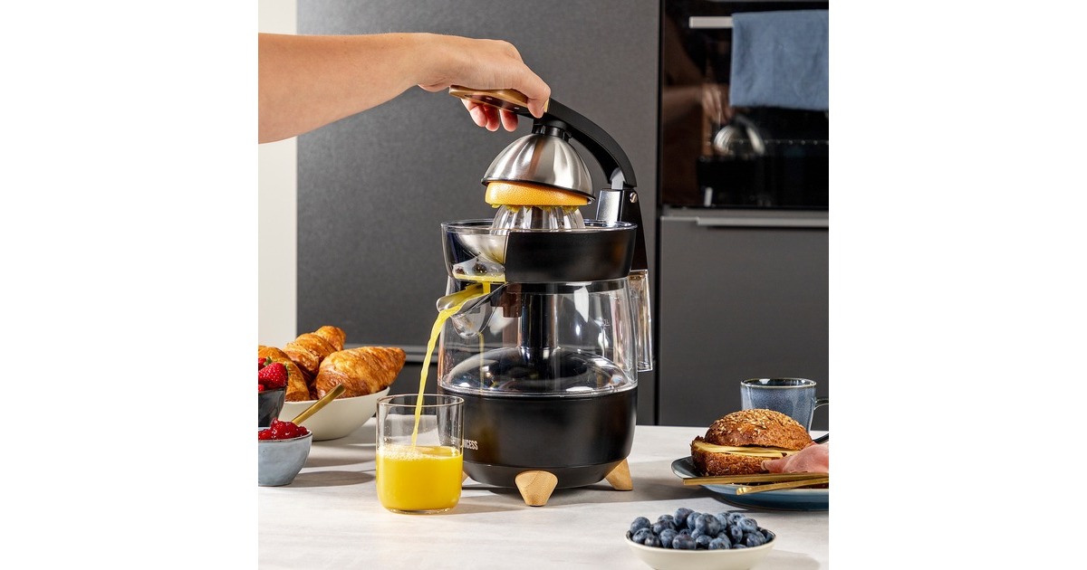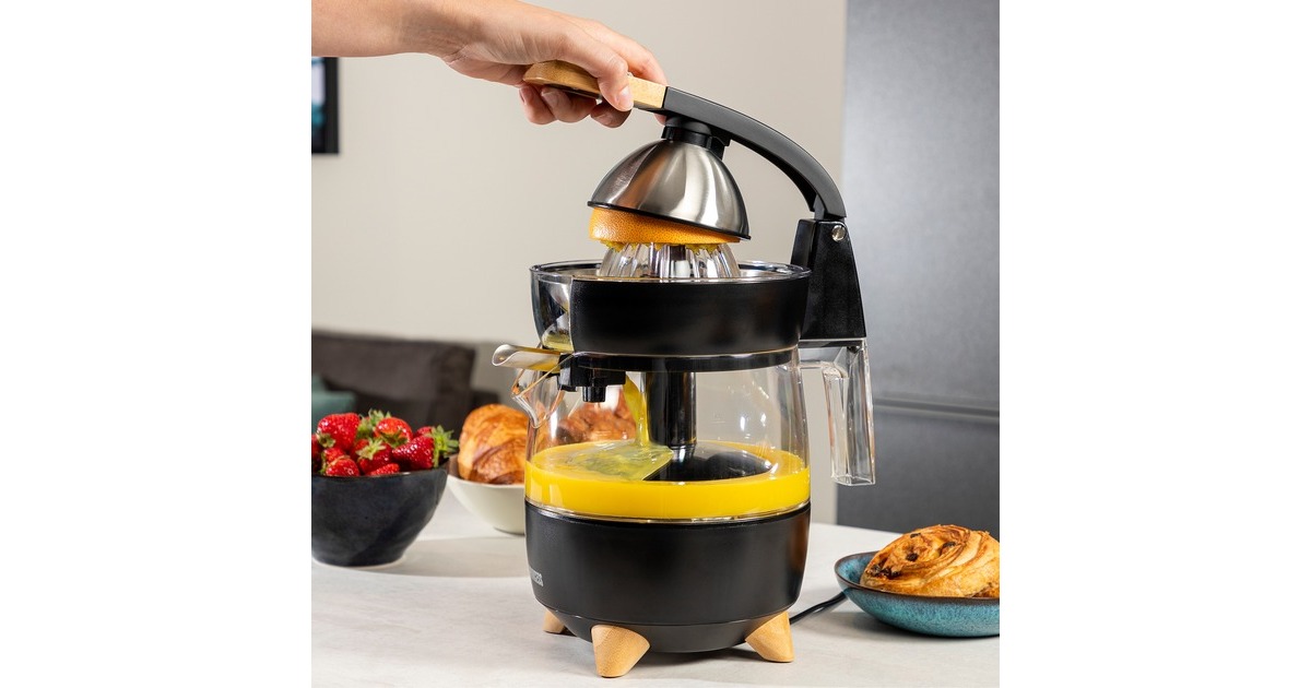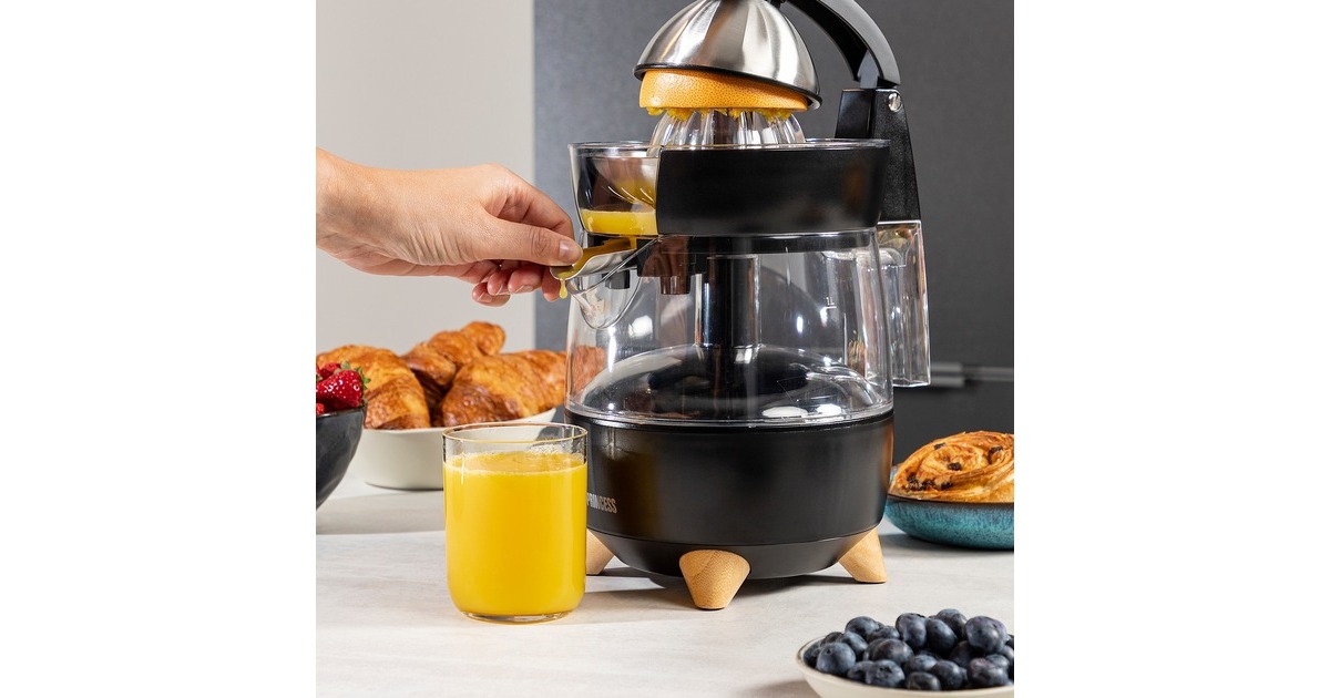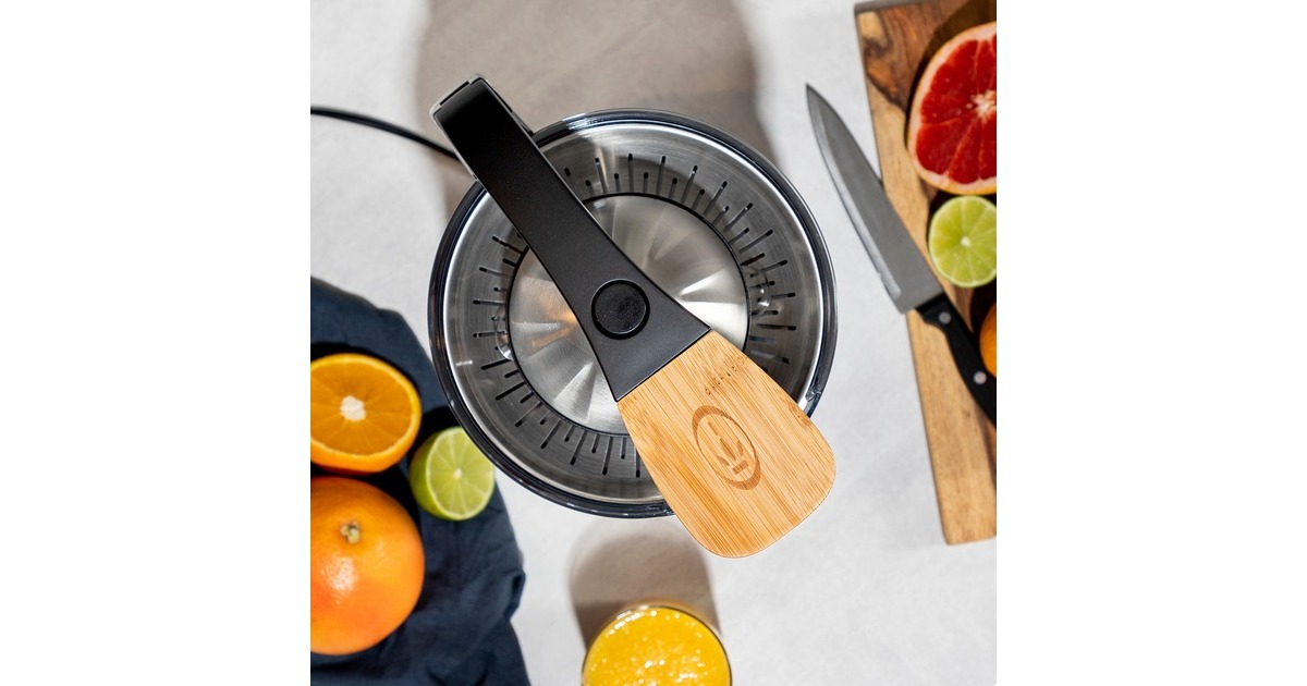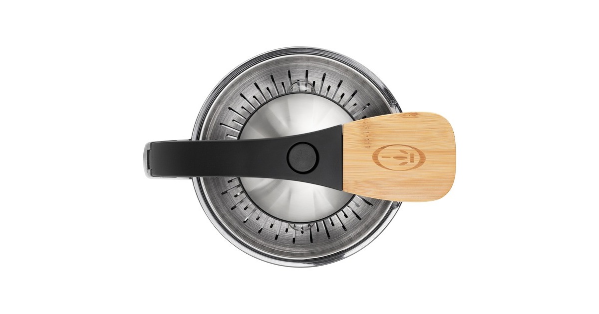 Dank der Verarbeitung von echtem Bambus und dem mattschwarzen Gehäuse ist die Princess 201862 Zitruspresse Pure ein echter Blickfang in jeder trendigen Küche. Der 3-Wege-Auslauf des Entsafters ist einzigartig in seiner Art und dank des Anti-Tropf-Systems bleibt die Arbeitsplatte sauber. Mit einer einfachen Handbewegung lässt sich wählen, ob nur ein Glas oder die ganze Kanne gefüllt werden soll. Der innovative Presskegel in Kombination mit dem leistungsstarken 300-W-Motor sorgt für einen perfekt frisch gepressten Saft. Der Presskegel ist so konzipiert, dass er für jede Größe von Zitrusfrüchten geeignet ist, von der Limette bis zum Granatapfel. Ideal für einen herrlichen Sonntagmorgen! Der Entsafter hat einen 3-Wege-Ausguss, wobei die neutrale Position als Tropfstopp dient. Wird der Ausguss nach unten gedrückt läuft der frisch gepresste Saft direkt in ein Glas – ideal, wenn nur ein oder zwei Gläser benötigt werden. Wird der Ausguss nach oben gedrückt, fließt der Saft in den 1-Liter-Krug und kann direkt der ganzen Familie serviert werden. Mit dem mitgelieferten Deckel lässt sich der Saft auch im Kühlschrank aufbewahren. Die Princess Zitruspresse Pure zeichnet sich durch ein luxuriöses Bambus-Finish aus. Dieses langlebige und verschleißfeste Material ist nicht nur schön anzusehen, sondern sorgt auch für ein robustes Erscheinungsbild. Außerdem verformt sich Bambus kaum, sodass sich die Füße nicht verbiegen und der Entsafter während des Gebrauchs nicht verrutscht. Für eine einfache Reinigung kann der Entsafter fast vollständig zerlegt werden und die einzelnen Teile sind außerdem spülmaschinengeeignet.