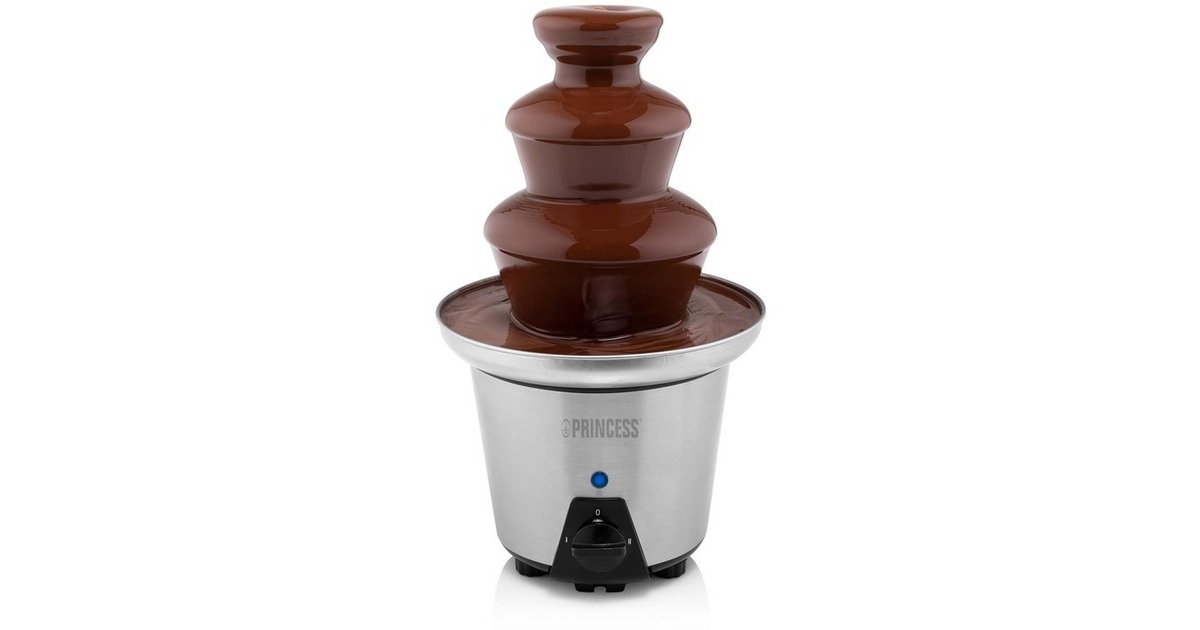 Mit dem Princess Schokoladenbrunnen XL 292998 lassen sich Freunde und Familienmitglieder mit einem köstlichen Dessert verwöhnen. Der Schokoladenbrunnen ist auch bei der Geburtstagsfeier Ihres Kindes ein toller Blickfang. Der Princess Schokoladenbrunnen hat drei Ebenen, eine Höhe von 32,5 cm und eine Kapazität von 0,7 l. So lassen sich Freunde und Familie mit frischem Obst, Cookies oder Marshmellows mit köstlichem Schokoladenüberzug verwöhnen. Der Princess Schokoladenbrunnen XL darf auf keiner Party fehlen. Dank der Warmhaltefunktion klumpt die Schokolade nicht, sondern bleibt schön flüssig. Die Pumpe und die Temperatur können separat eingestellt werden. So kann man selbst bestimmen, wie schnell die Schokolade umgewälzt wird und wie heiß sie sein soll. Aufgrund der 90 Watt Leistung des Schokoladenbrunnens ist der Brunnen Schnell einsatzbereit. Für Sicherheit bei der Verwendung sorgen die rutschfesten Füße. Dank des robusten Materials ist auch die Reinigung einfach, die drei Ebenen können getrennt im Geschirrspüler gereinigt werden.Art.-Nr.: 1704357