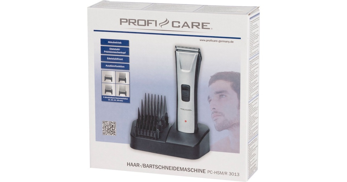 Die ProfiCare PC-HSM/R 3013 Haar-/Bartschneidemaschine mit hochwertiger Edelstahlfront sorgt für ein gleichmäßiges Ergebnis beim Trimmen. Der Scherkopf ermöglicht ein exaktes Nachziehen der Bartkonturen auch an schwer zugänglichen Stellen sowie das saubere Ausrasieren des Haaransatzes im Nackenbereich. So erzielt man genau den Look, den man gerne möchte. Mithilfe der Kammaufsätze sind vier verschiedene Schnittlängen möglich. Das Gerät verfügt zudem über eine 3-stufige Ausdünnfunktion.Art.-Nr.: 1542170